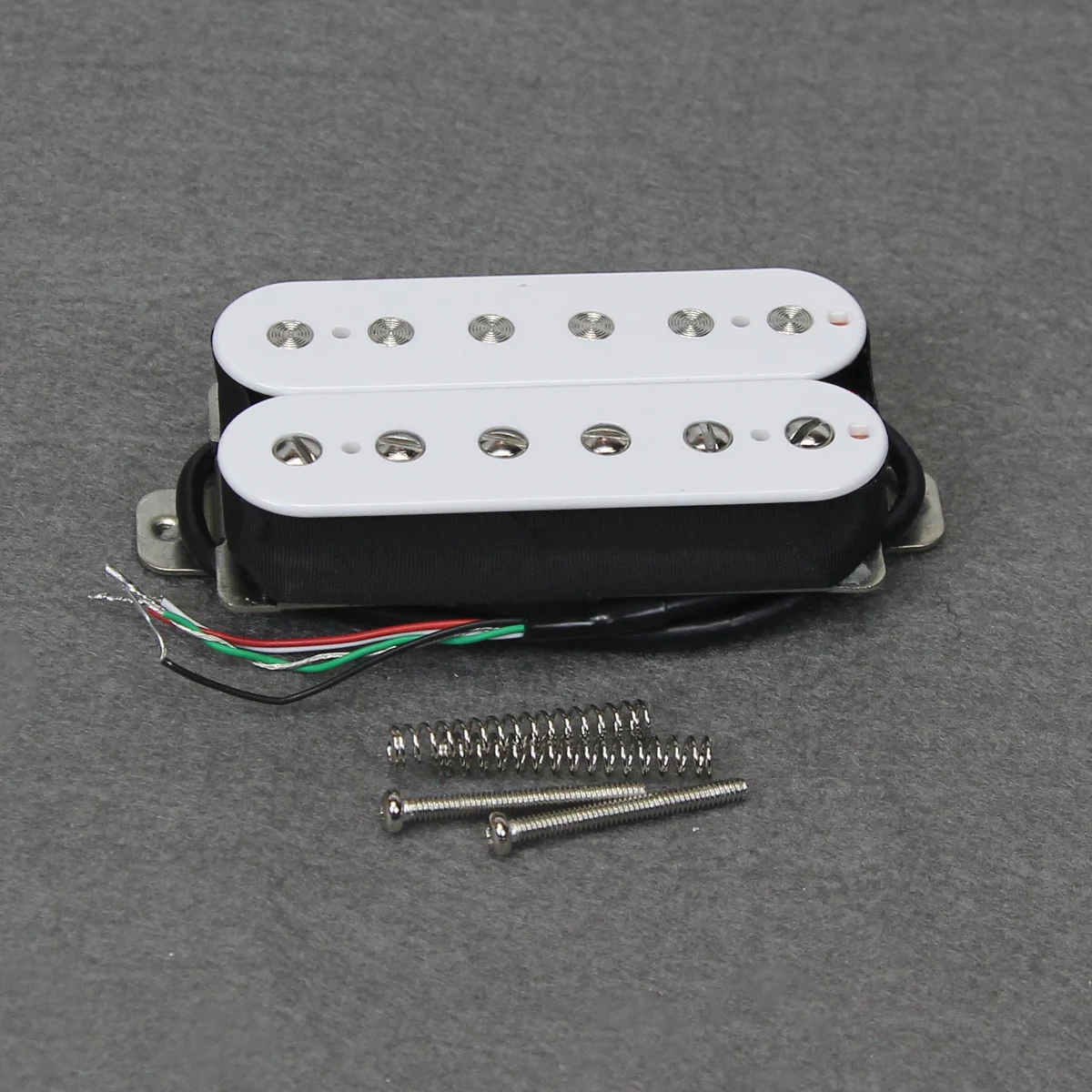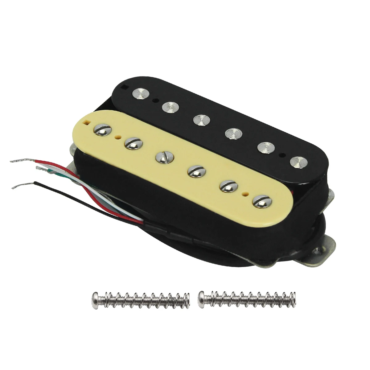 Experience rich, versatile sound with this Alnico 5 Humbucker electric guitar pickup, available in neck (7-8k ohms) and bridge (14-15k ohms or 8-9k ohms) configurations. Featuring a double coil design, each pickup has 6 non-adjustable slug pole pieces and 6 adjustable screws, with pole spacing of 50mm for the neck and 52mm for the bridge. Crafted with durable ABS bobbins, a nickel silver baseplate, and fully waxed sealing for longevity. Comes with a 4-conductor PVC cable, 2 screws, and springs. Available in Zebra, White, and Black, this high-quality pickup effortlessly enhances your guitar’s tone and style.