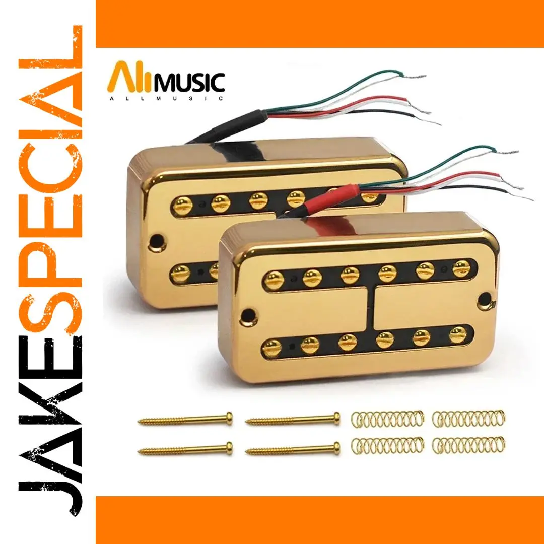 Experience the luxurious aesthetic of this this Alnico 5 Humbucker, crafted to elevate your guitar’s tone and style. The highly polished, reflective gold or chrome brass covers provide a sleek, premium look, complemented by black adjustable pole pieces arranged in two precise rows. The rectangular pickups measure approximately 70mm in length and 38mm in width, fitting seamlessly into your guitar's body. Designed for both neck and bridge positions, this humbucker features coil splitting support, allowing versatile tonal variations. The white copper base plate ensures durability and high-quality sound transmission. When you install this pickup, you'll acutely feel the craftsmanship and rich metallic finish adding sophistication to your instrument, making it a perfect upgrade for enthusiasts seeking both style and performance.