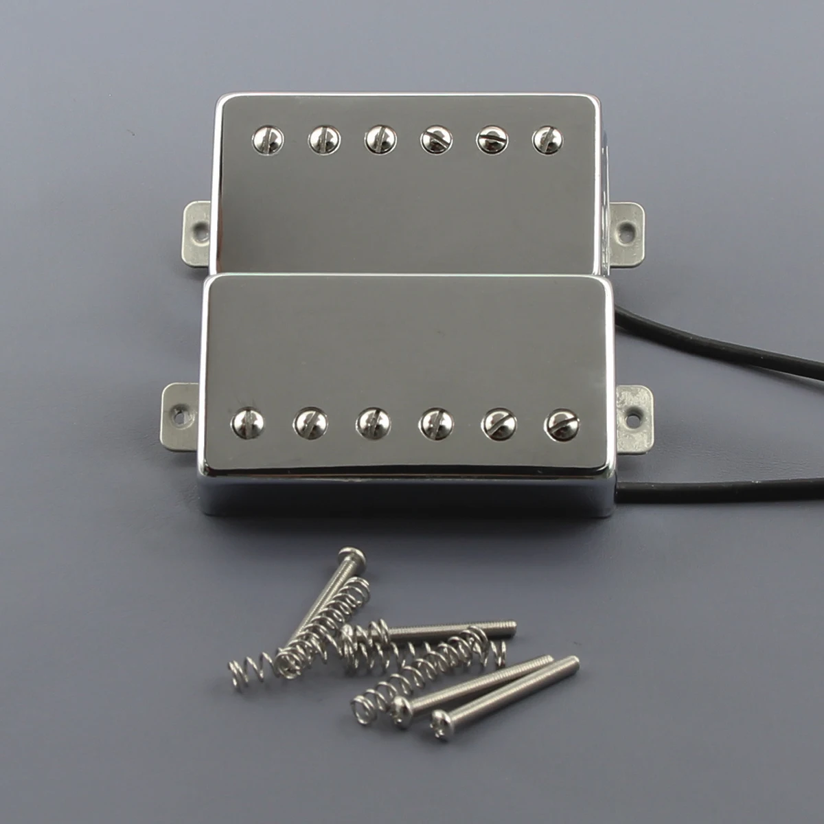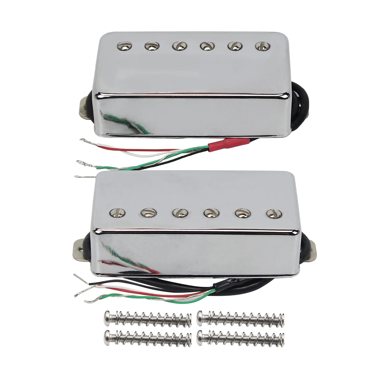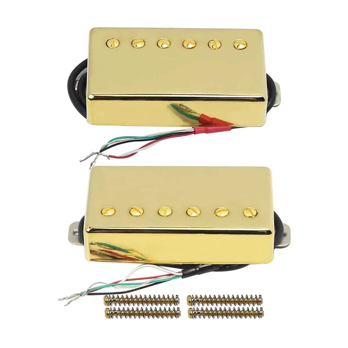 Imagine enhancing your guitar with this exquisite set of two Alnico 5 LP-style humbucker pickups, designed specifically for those seeking powerful, rich sound. The sleek, polished metal finishes—available in shiny chrome or reflective gold—bring a modern, high-end look to your instrument. The clean, rectangular shape with smooth, rounded edges pairs perfectly with the classic aesthetic of LP-style guitars. With meticulously designed pole spacing of 50mm for the neck and 52mm for the bridge, each pickup features ten precise pole pieces for optimal magnetic performance. Fully wax-potted for squeal-free operation, these pickups help you achieve your desired tone with confidence. Whether performing live or recording, this high-quality set guarantees durability and stunning visual appeal.