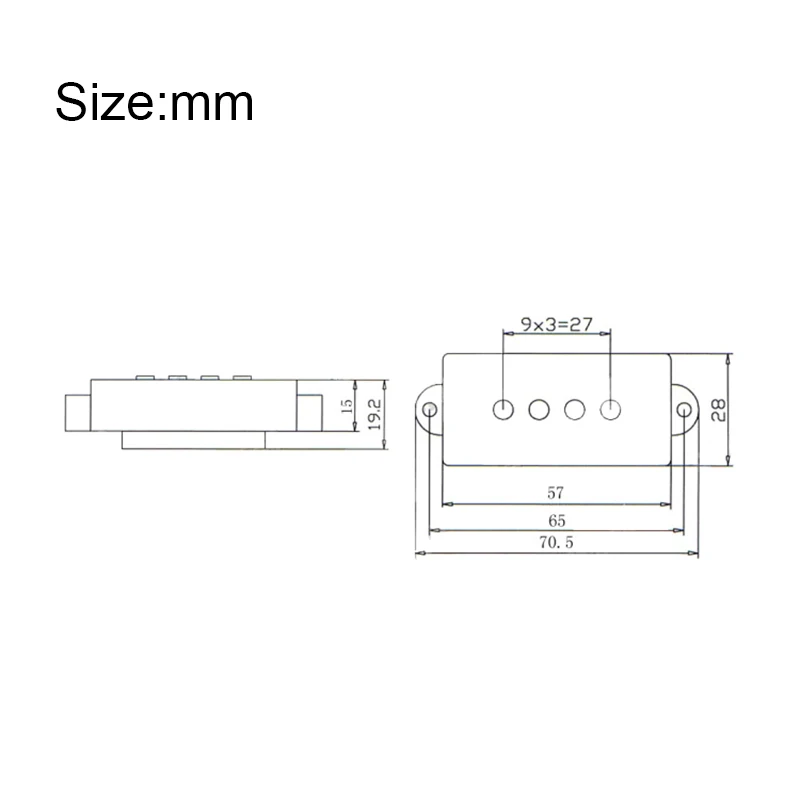 - Black ABS plastic casing with a clean, minimalist rectangular design for easy integration into any bass guitar.