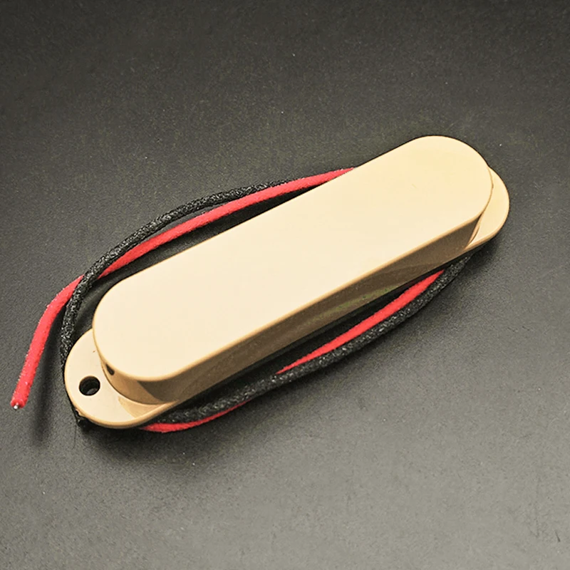 The Alnico 5 Sealed ST Style Electric Guitar Pickup is a handmade single coil pickup designed for Neck, Middle, and Bridge positions, featuring resistance values of 5.4K for the Neck and Middle pickups, and 5.6K for the Bridge, with a tolerance of 0.5K. It utilizes Alnico 5 magnets with flat pole pieces, offering 50mm spacing for the Neck and Middle, and 52mm for the Bridge. This pickup includes a fiber bobbin, waxed cloth cable, and is available in several colors: Black, White, Cream, Yellow, Red, and Green. It also comes with screws and tubing for easy installation, perfect for achieving a vintage sound.