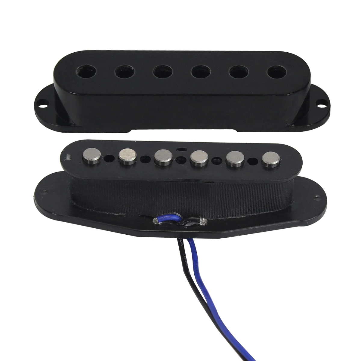 - Middle pickup features flat pole pieces with 50mm spacing, RWRP design for hum cancellation, 5-6K resistance, and a flat-top black casing.