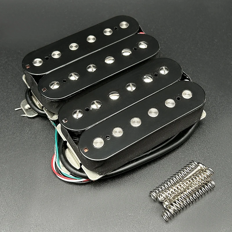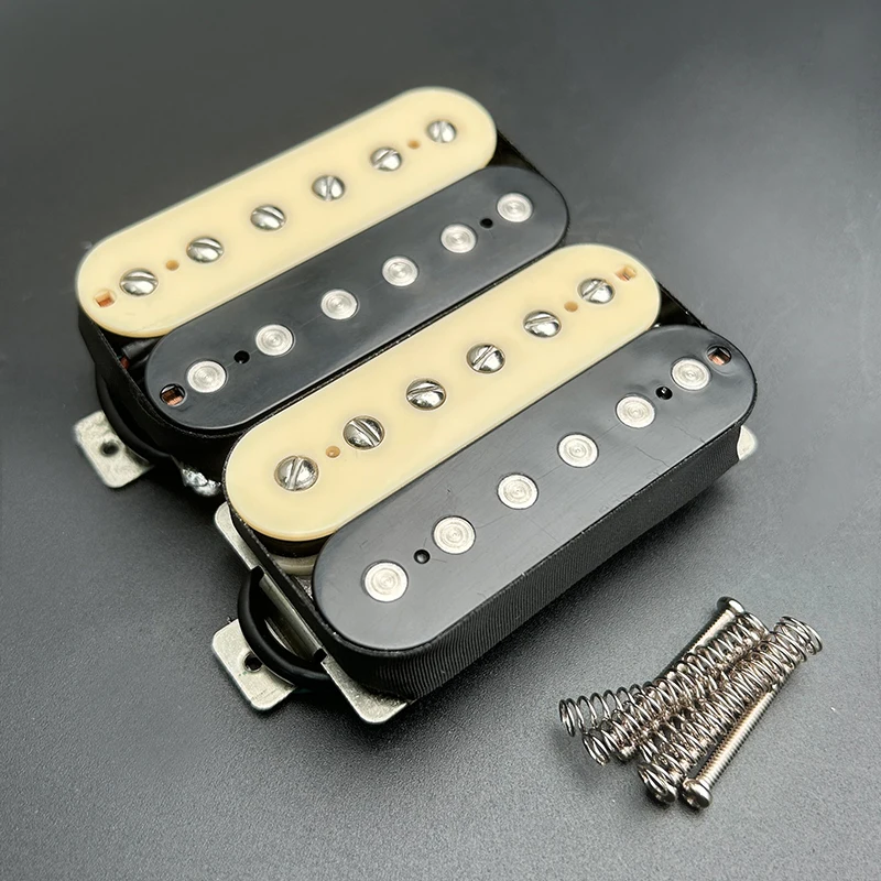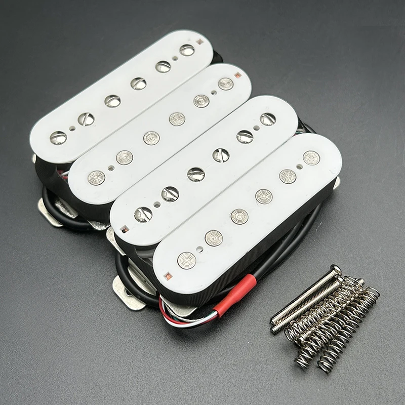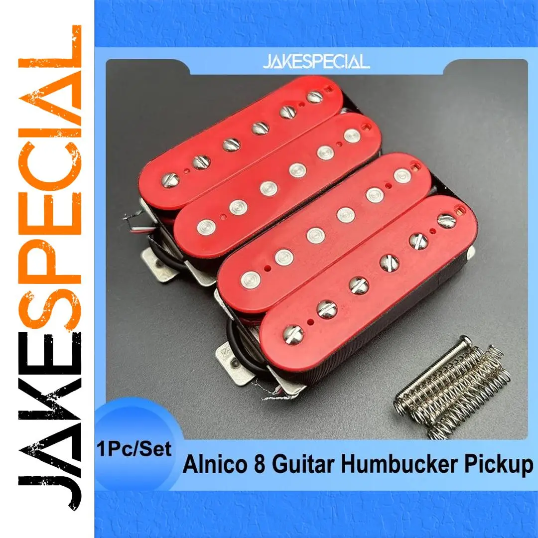 The Alnico 8 Electric Guitar Pickup is a high-performance double coil humbucker featuring an Alnico 8 magnet for powerful sound. With dimensions of 68.5 mm x 36.5 mm, it includes 12 solid pole pieces—6 non-adjustable slug and 6 adjustable screw pole pieces—ideal for both neck and bridge positions. The pole spacing is 50 mm for the neck and 52 mm for the bridge, with a resistance of 7.5k for the neck and 15k for the bridge, alongside a tolerance of 0.5k. The pickup, constructed with an ABS bobbin, comes fully waxed and sealed, with PVC wiring offering 4 outputs. Each set includes 2 screws and 2 springs. Multiple color options are available to suit your style.