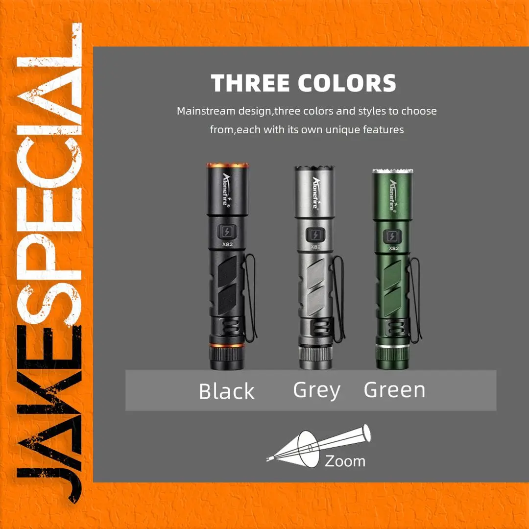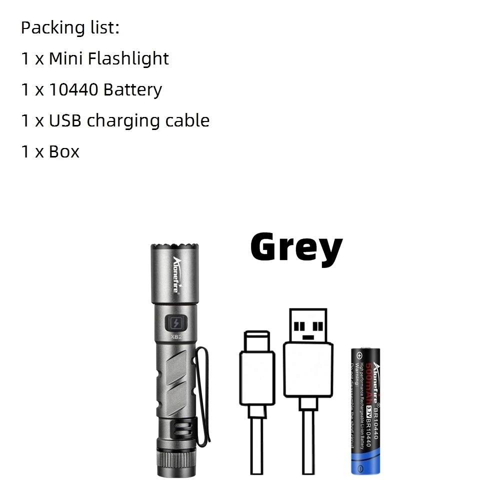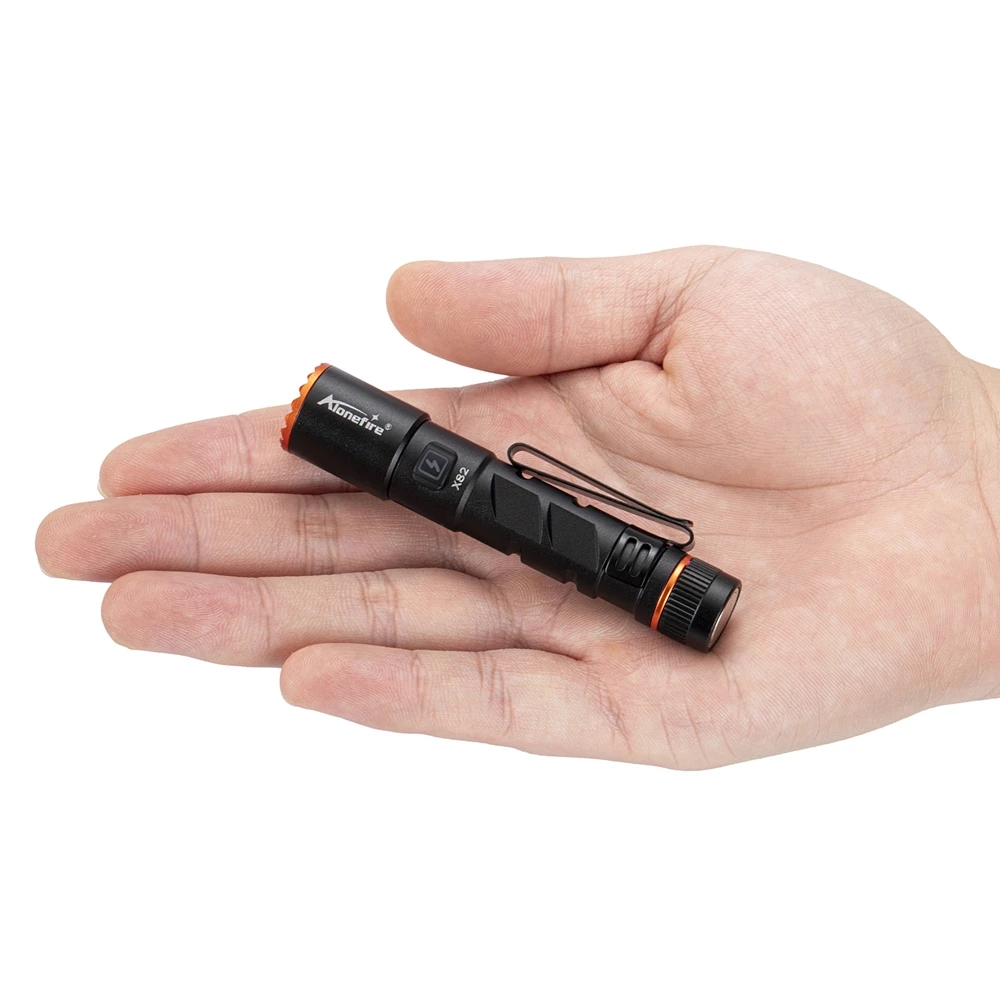 The Alonefire Mini EDC High Bright LED Pen Flashlight (Model Number: X82) is an essential tool for outdoor enthusiasts and emergency preparedness. With a sleek cylindrical design, this flashlight is available in three stylish colors: bold black with an orange accent, smooth grey, and a subdued forest green. Constructed from durable aluminum alloy, it is both lightweight and robust. Featuring XPG LED bulbs that produce an impressive 450 lumens, it offers a lighting distance of approximately 50 meters. Its six light modes, including strong, medium, weak, and flash, make it versatile for various situations. This flashlight is waterproof and includes a magnetic base for secure attachment during adventures.