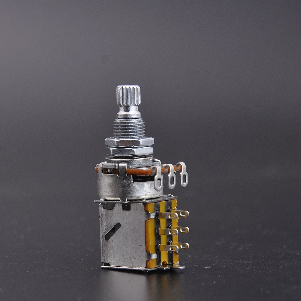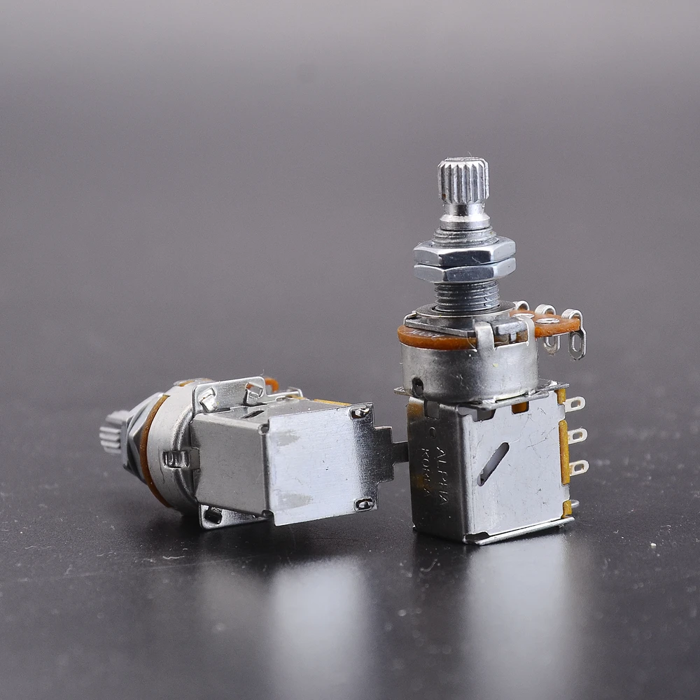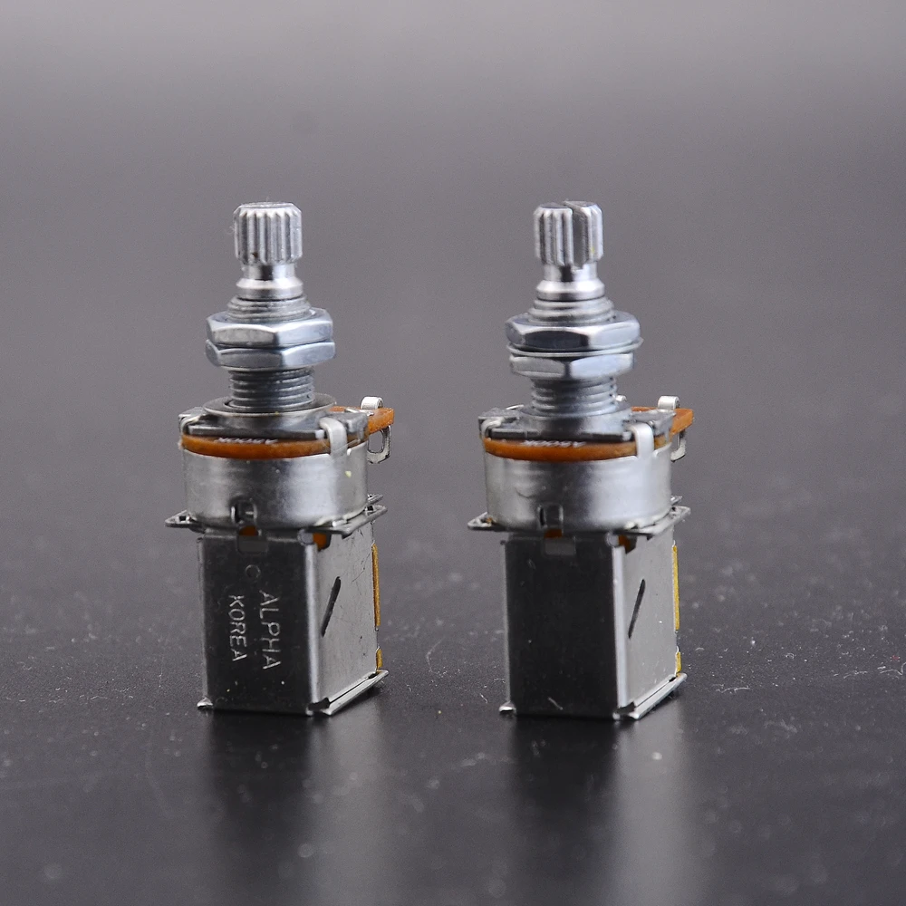 Once installed, you will immediately notice the improved control and tonal variation your instrument offers. Whether you are upgrading your current setup or customizing a new guitar, this potentiometer delivers reliable performance and sophisticated aesthetics. Make your instrument stand out with this quality component, designed for life-long use and excellent sound modulation. Don't miss the opportunity to enhance your musical experience—add this alpha push pull potentiometer to your collection today and enjoy the perfect blend of style, functionality, and durability.
