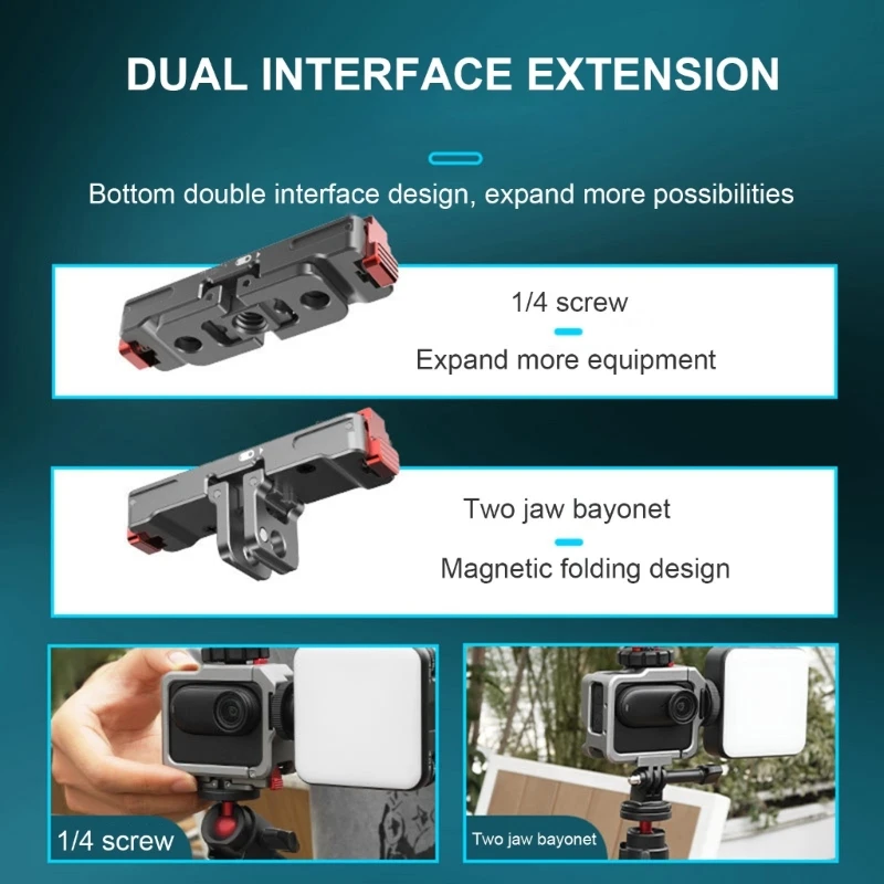 Imagine securing your camera with confidence using this sleek, compact aluminium bracket. Measuring approximately 6.5 cm in length and 1.05 cm wide, its modern design features a matte black and metallic grey finish, giving it an industrial yet refined look. The bold red accents at the end clamps add a striking visual contrast and enhance grip, ensuring a secure fit. Its flat top surface provides a smooth platform for your camera, while the sturdy metal bracket with circular holes ensures durability. The foldable two-buckle expansion mechanism offers versatility for various mounting needs, especially in high-vibration situations. This high-strength alloy component guarantees stability, making your shots steady and reliable in demanding environments.