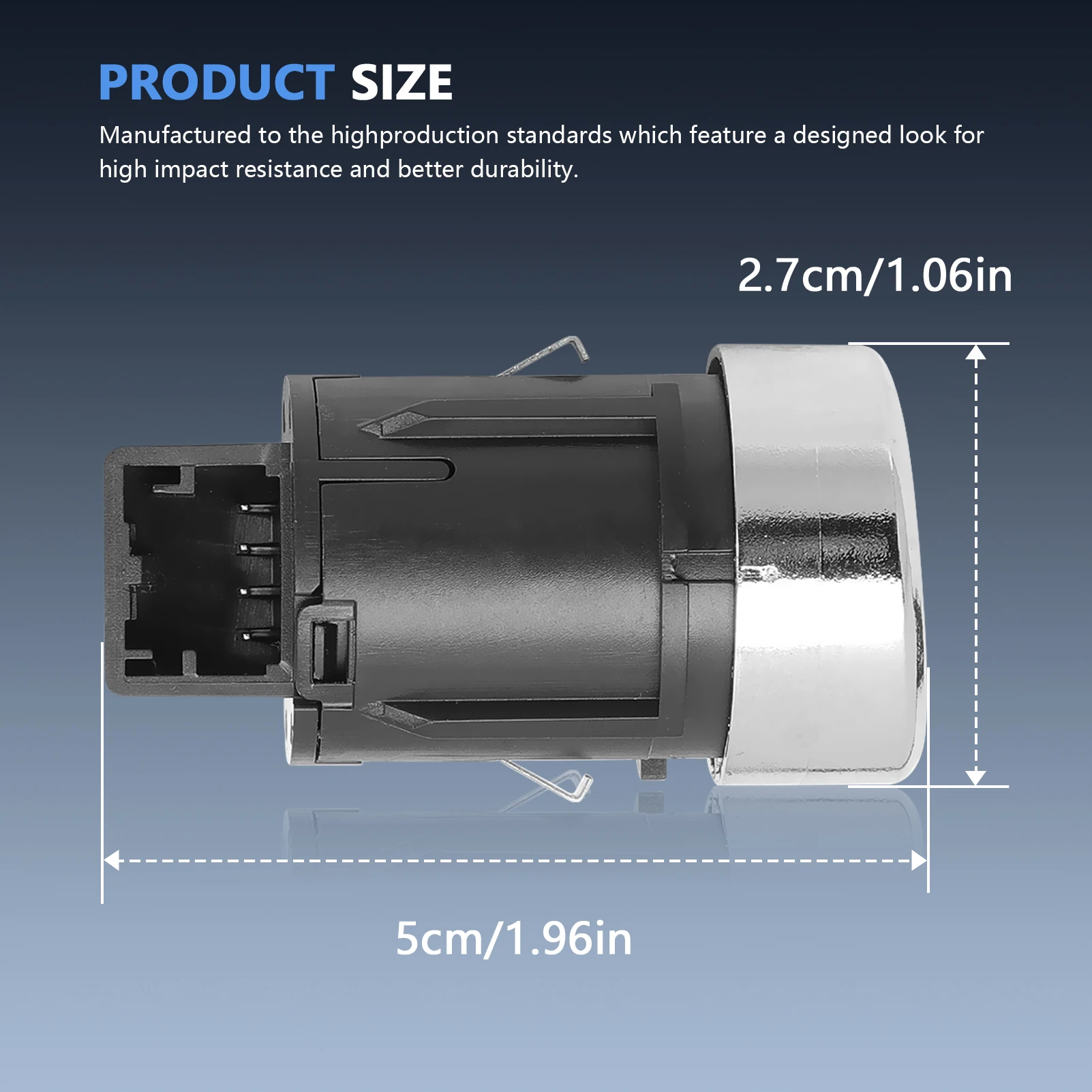 - Aluminium-face button with a polished finish delivers a modern, reflective look that complements contemporary car interiors perfectly.