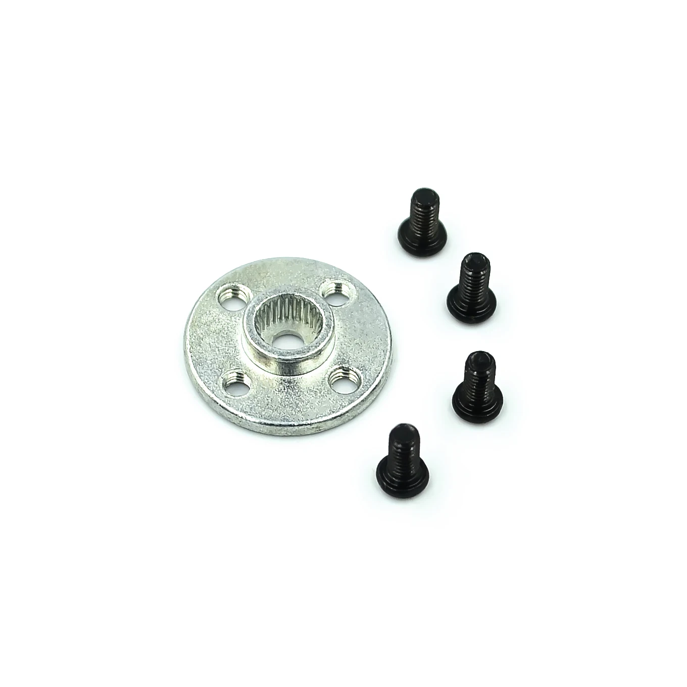 - The central splined hole with toothed or grooved inner surface ensures a secure fit onto servo shafts, such as MG995 or MG996, for reliable operation.