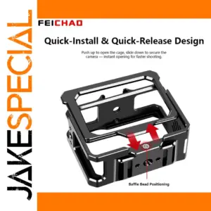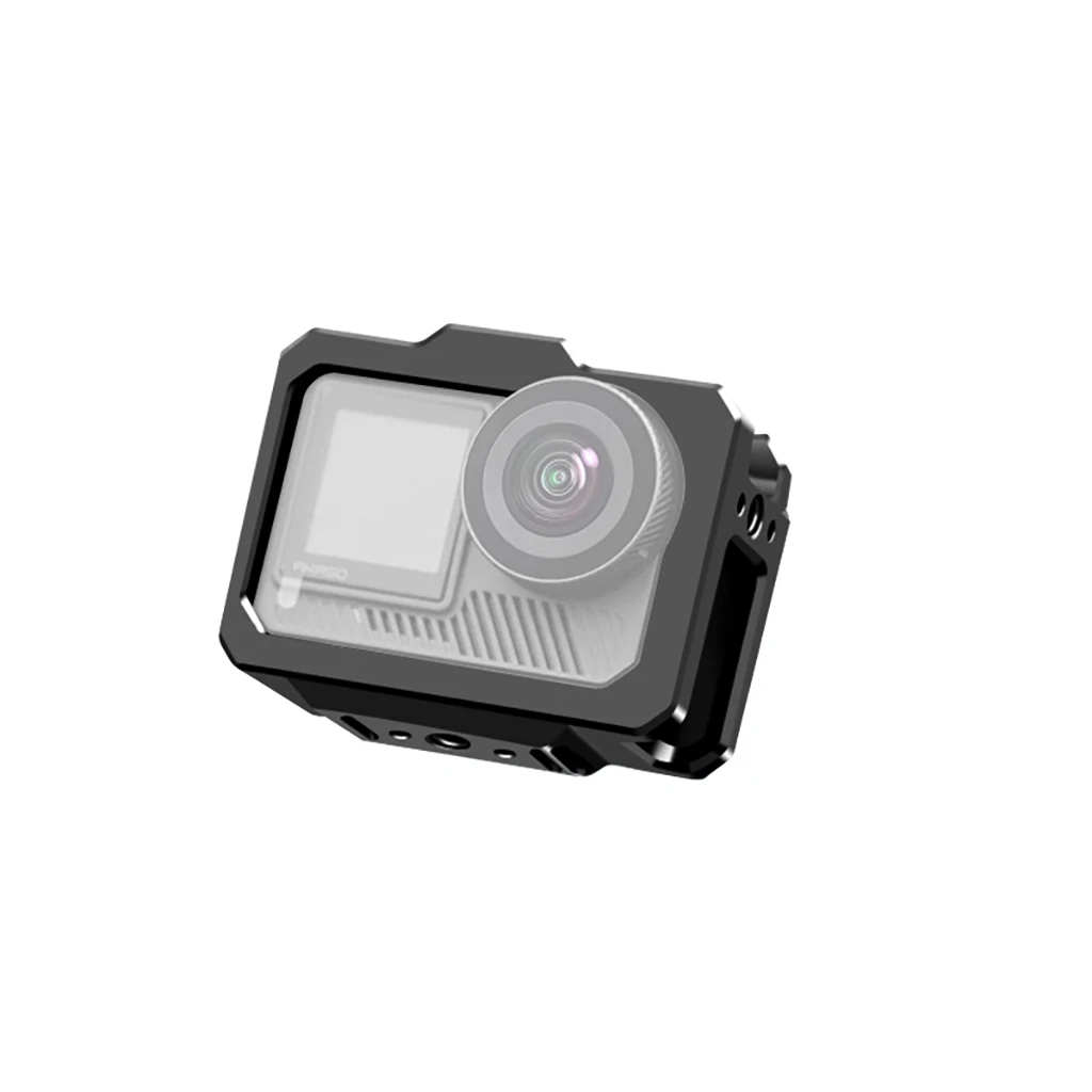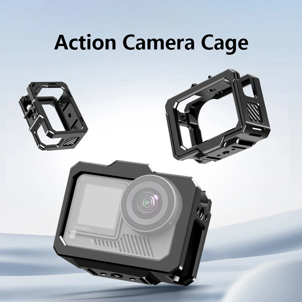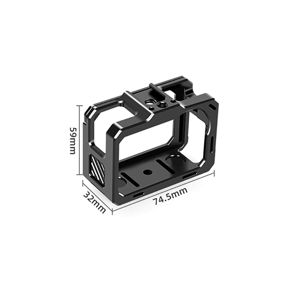 Enhance your filming setup with this durable aluminum alloy action camera cage designed specifically for the AKASO Brave8. Featuring a sleek metallic matte black or gunmetal finish, it offers a protective protective housing with an open-frame design, ensuring lightweight strength. The cage includes a quick-release mechanism for easy installation and removal, a 1/4″-20 screw hole for secure mounting, and a cold shoe mount for attaching microphones, lights, or other accessories. Its functional and rugged aesthetic makes it ideal for professional-looking shots, providing both safety and versatility while maintaining a sleek, modern appearance tailored for advanced content creation.