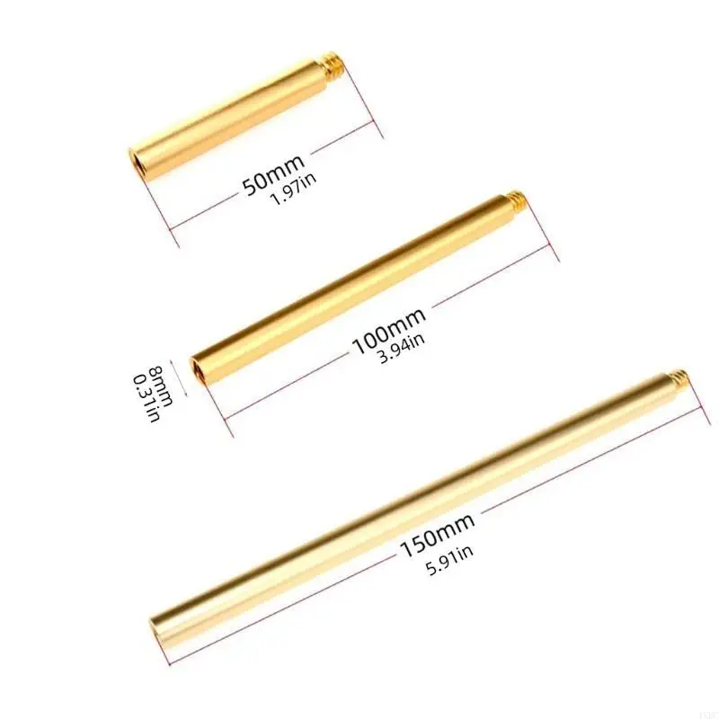 Enhance your photography setup with this elegant aluminum alloy extension rod set, designed for versatile use with cameras, tripods, and accessories. Available in sophisticated black and lustrous gold, these rods feature a smooth, shiny finish that adds a professional touch to your gear. Their cylindrical shape and consistent 8mm diameter ensure a comfortable grip and reliable stability. With three different lengths—50mm, 100mm, and 150mm—you can customize your shot angles effortlessly, whether for close-ups or wide perspectives. The precise threading at the top and bottom allows easy attachment to a variety of equipment. Upgrade your equipment with these durable extension rods to improve your shooting experience.