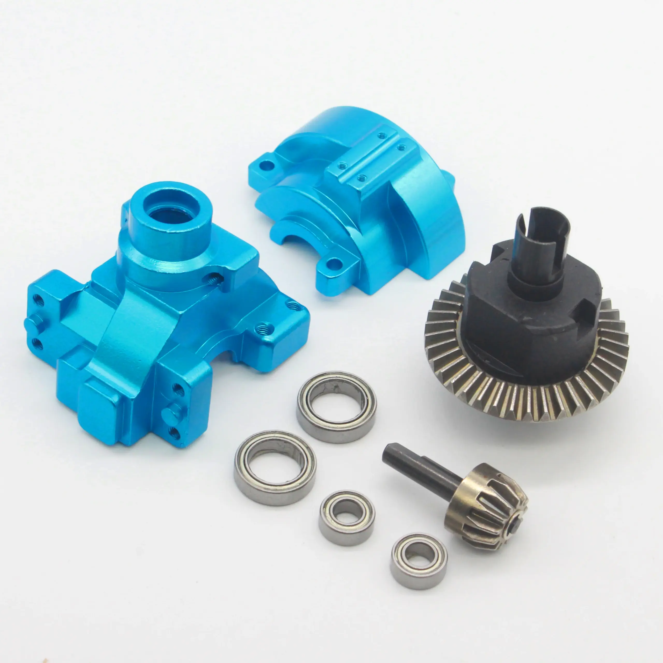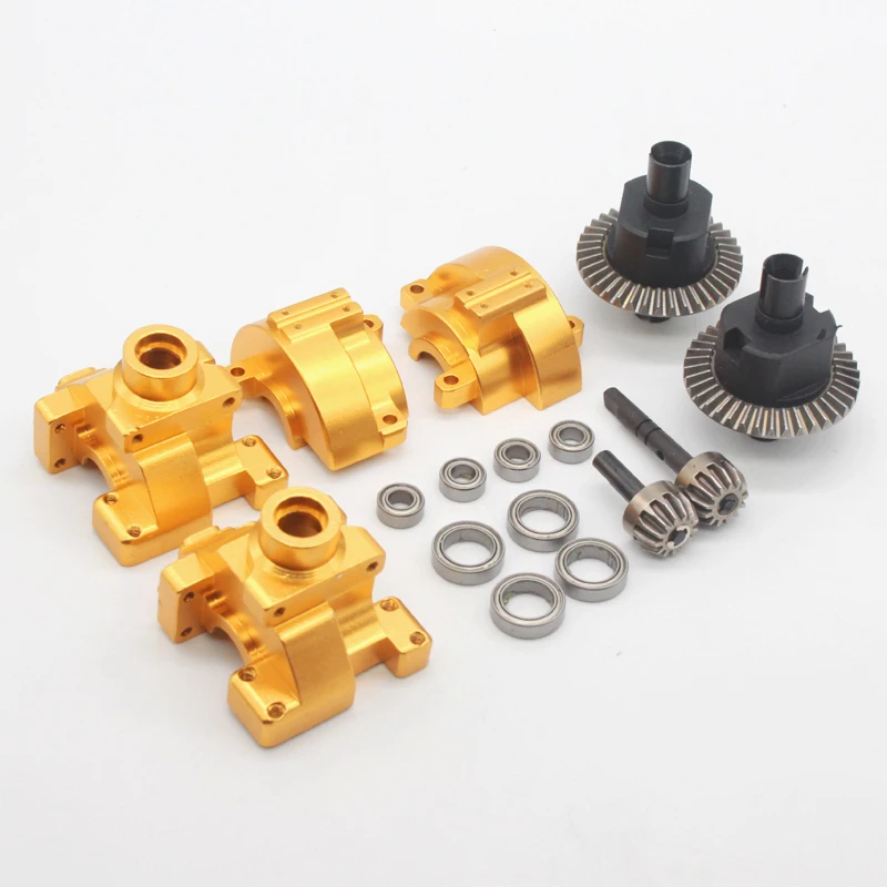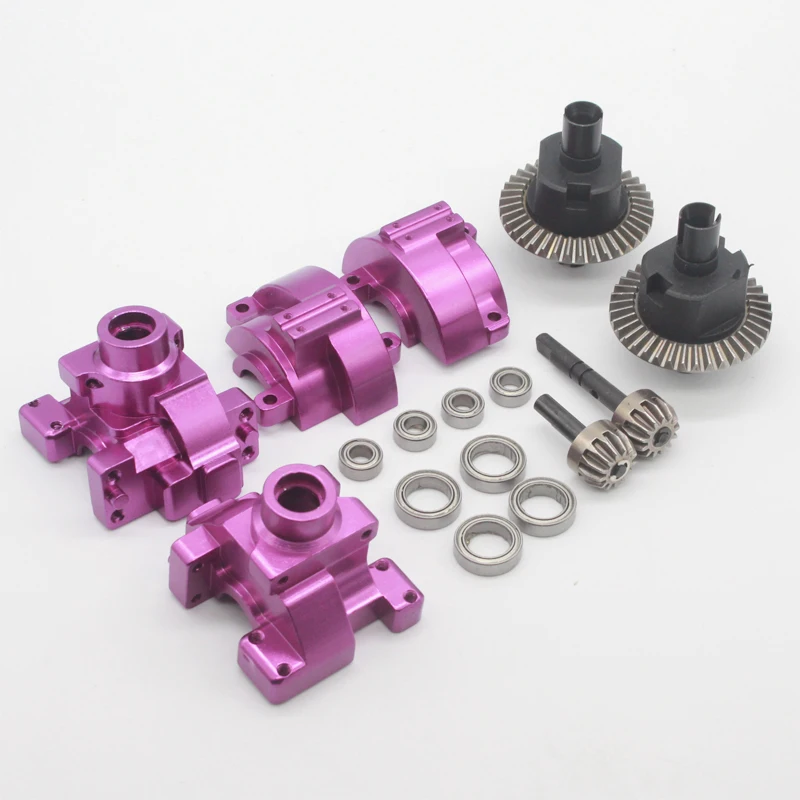 Experience the thrill of upgrading your 1/10 scale remote control vehicle with this comprehensive gear and drive assembly. Crafted from high-quality metal, these front and rear gearboxes feature a polished, sleek metallic finish in striking colors such as blue, gold, silver, and purple. Designed for durability and precision, they improve vehicle performance while maintaining a modern, professional look. Their smooth, shiny surfaces highlight craftsmanship and technical excellence, giving your RC car a high-end aesthetic. Easy to assemble, these gearboxes are compatible with various models and enhance driving reliability. Elevate your RC experience with these visually stunning and robust components, ensuring your vehicle is equipped for optimal performance on any track or terrain.