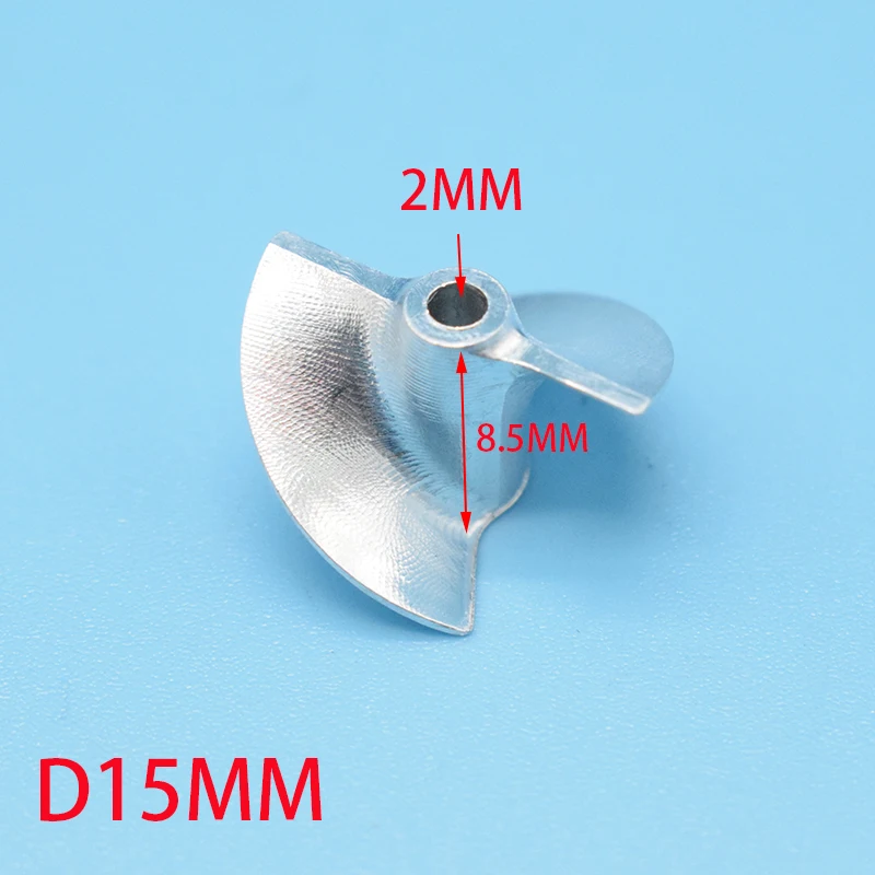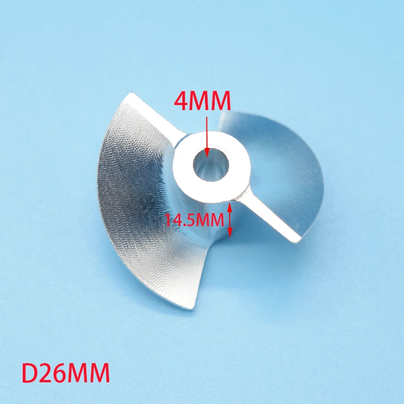 Experience superior water propulsion with this aluminum alloy RC jet boat propeller, expertly crafted for precision performance. Available in three sizes—15mm, 26mm, and 40mm—each features a sleek, two-blade design with a polished metallic finish that radiates modern elegance. The blades are aerodynamically curved with a slight twist, optimizing thrust and stability. The inner diameters range from 2mm, fixed with glue, to 4mm and 5mm, secured by bayonet mount for easy installation. Designed to handle high rotational speeds of KV1100, these propellers are perfect for watercraft enthusiasts seeking durability and efficiency. Each propeller is sold individually, offering versatility and reliability for your RC boat or remote control water vehicle.