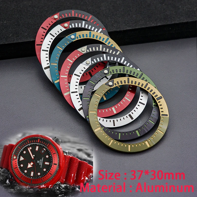 Transform your dive watch with this stylish aluminum bezel insert designed specifically for Tiny Canned Tuna cases. Available in bold colors like red, blue, green, black, yellow, and orange, it adds a pop of personality to your timepiece. The matte or semi-matte finish lends a sleek and understated elegance, perfect for both casual and professional settings. With precise engravings of minute markers around the circumference and a luminous pip at 12 o'clock, this bezel insert ensures clear readability in low-light conditions. Crafted from durable aluminum, it offers strength and longevity, making it ideal for DIY repairs or upgrades. Its universal design fits the NH35 and NH36 movements, blending form with function effortlessly.