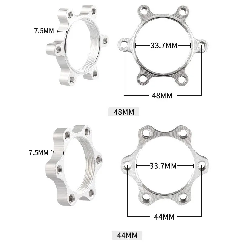 Experience a seamless upgrade to your bicycle’s braking system with this high-quality aluminum alloy disc brake flange adapter. Crafted for durability and lightweight performance, this adapter features a sleek, polished surface that reflects a modern, metallic aesthetic. Its compact design ensures easy installation on your bike, while the corrosion-resistant finish guarantees long-lasting performance. Available in two sizes—44mm and 48mm diameter—you can choose the perfect fit for your bike's hub. The six-bolt flange pattern simplifies attachment of the disc brake rotor, providing a secure and precise fit. Whether you're enhancing an existing setup or customizing your bike, this adapter offers both style and functionality, ensuring peak biking performance.