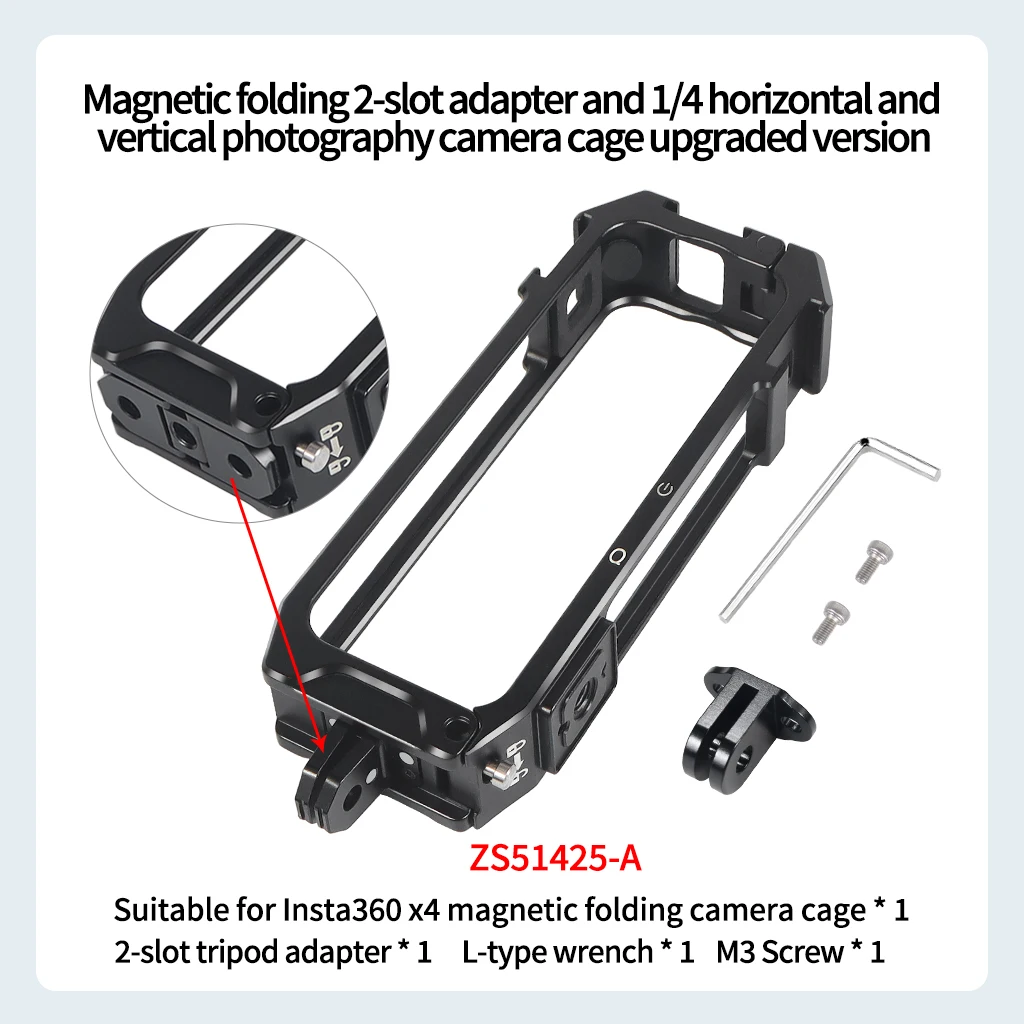 Imagine capturing every adrenaline-filled moment with confidence, knowing your Insta360 X4 is protected by this expertly engineered cage. Its sleek, modern design seamlessly integrates with your action camera setup, offering quick and secure attachment for accessories like microphones and lights. Whether you’re skiing down a mountain or biking through rugged trails, this cage enhances your creative potential. With its lightweight construction, durable anodized surface, and easy-to-use magnetic folding feature, it’s the gear you need to elevate your videography. Invest today and experience heightened stability, protection, and flexibility in all your outdoor pursuits.