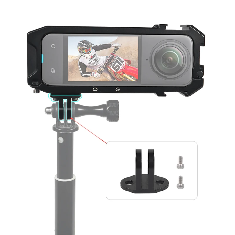 Immerse yourself in the ultimate protection and versatility with this aluminum alloy cage designed specifically for the Insta360 X4. Crafted from high-quality anodized aluminum, its matte black finish lends a modern, understated aesthetic while ensuring durability and resistance to wear. The minimalist rectangular frame features precise cutouts on the sides, reducing weight and maintaining a sleek profile perfect for outdoor adventures. Equipped with multiple 1/4-inch screw holes and cold shoe mounts, this cage allows you to attach microphones, lights, tripods, and other accessories seamlessly. Whether you're filming in landscape or portrait orientation, this cage provides easy access to all buttons and ports, ensuring your workflow remains smooth and efficient during any shoot.