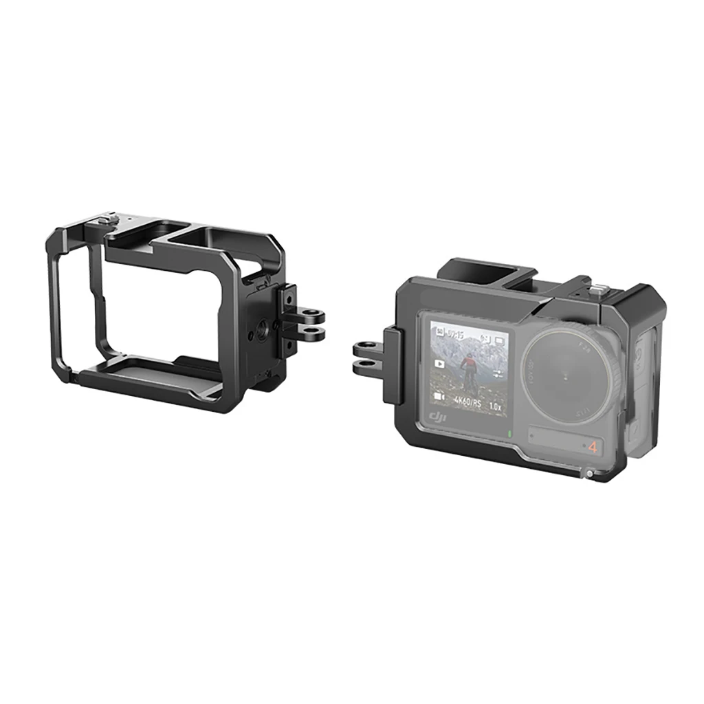 Elevate your action footage with this lightweight aluminum alloy camera cage rig, measuring 81.4mm x 54.4mm x 33.8mm, designed for DJI Osmo Action 3 and 4 cameras. Featuring a sleek black finish and a minimalist open-frame structure, it provides a durable, protective shell with multiple mounting points for accessories like lights and microphones. The quick-release stand and support mount holder shell facilitate easy installation and removal, while supporting a maximum load capacity of 250g. Ideal for dynamic activities, this versatile cage enhances stability, protection, and expandable mounting options, making it perfect for serious enthusiasts seeking a reliable, stylish solution for their action camera gear.