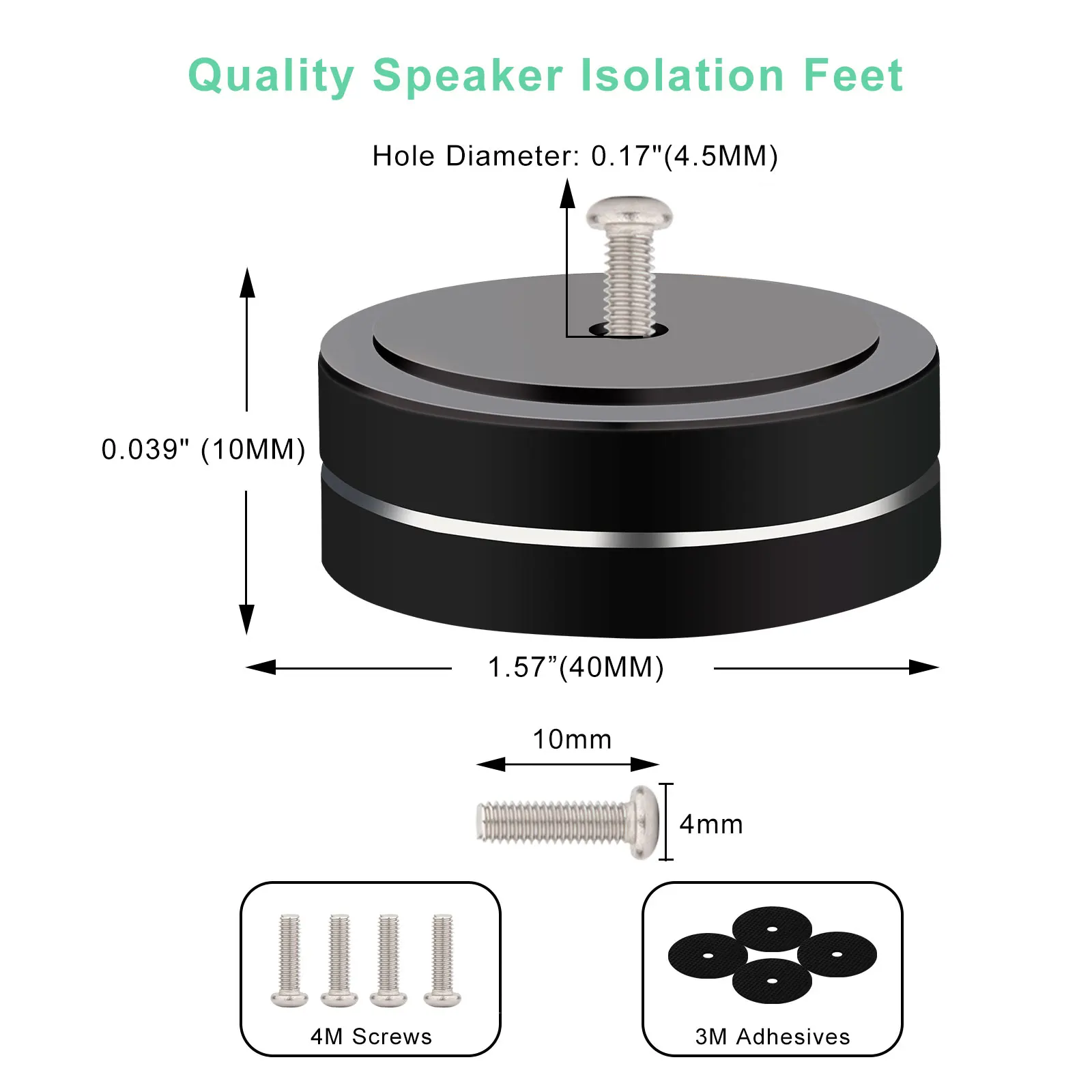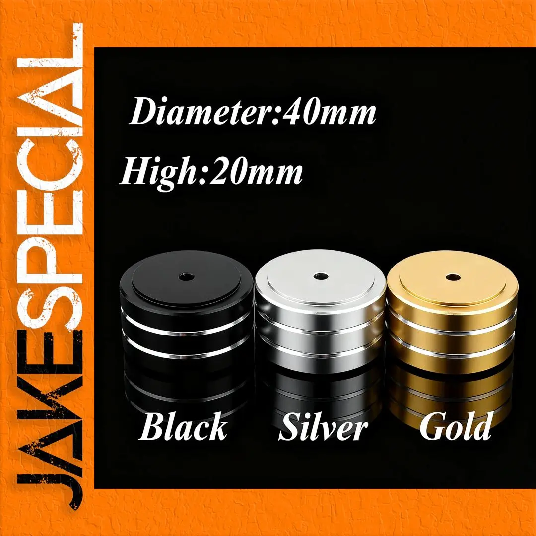 Transform your audio equipment with these sleek, high-quality aluminum isolation feet designed for amplifiers, speakers, turntables, and CD players. Measuring 40mm in diameter and 20mm in height, these feet provide stable, vibration-damping support that reduces unwanted resonance, ensuring clearer sound reproduction. Available in stylish silver, black, and gold finishes, their polished, reflective surfaces add a modern touch to any setup. Equipped with spikes for increased stability and sound isolation, they help optimize the performance of your equipment. Easy to install using included M4×10 screws, these feet are perfect for LP record stabilizers, vinyl clamps, and audio devices that require precise vibration control and elevated positioning. Trust these durable supports for a better listening experience.