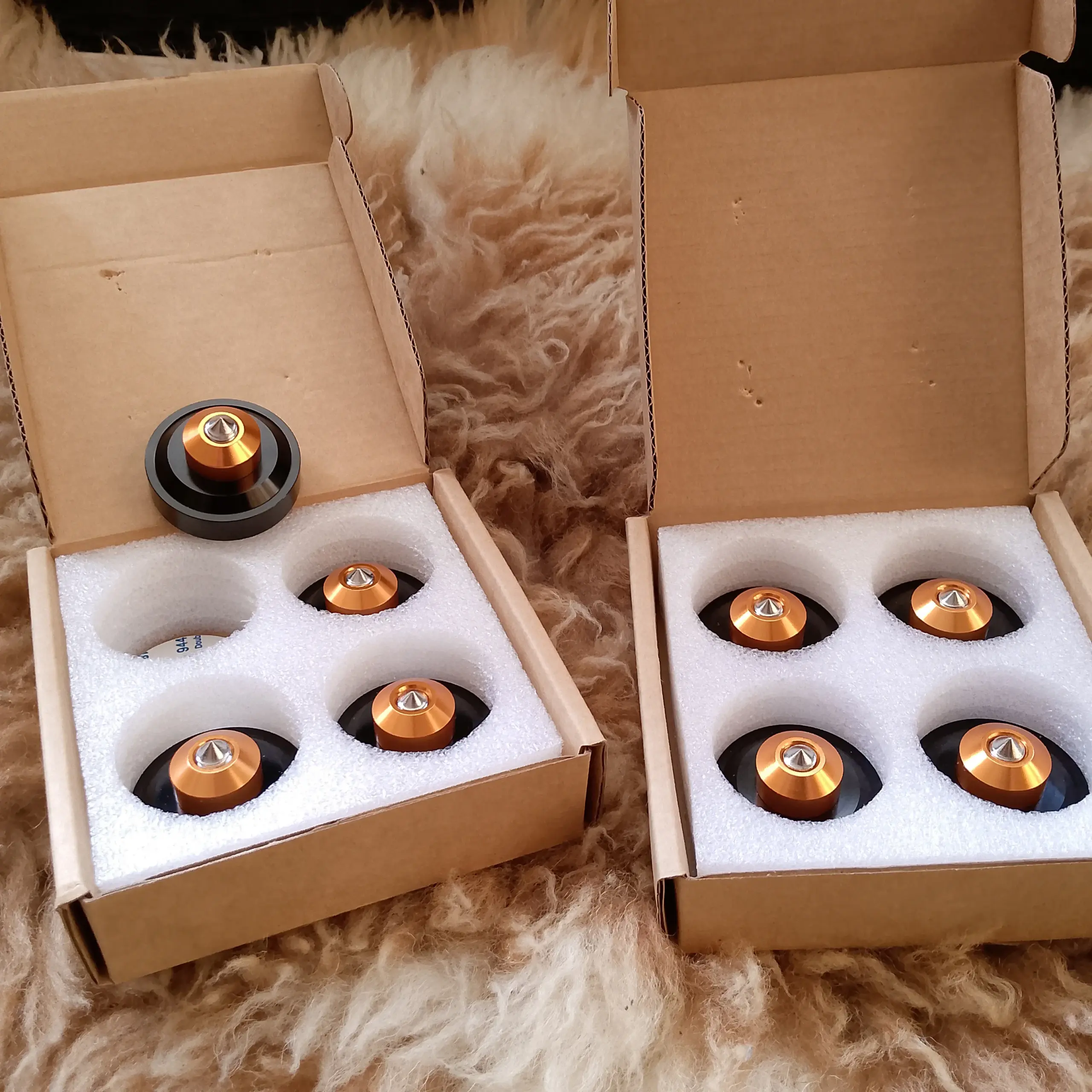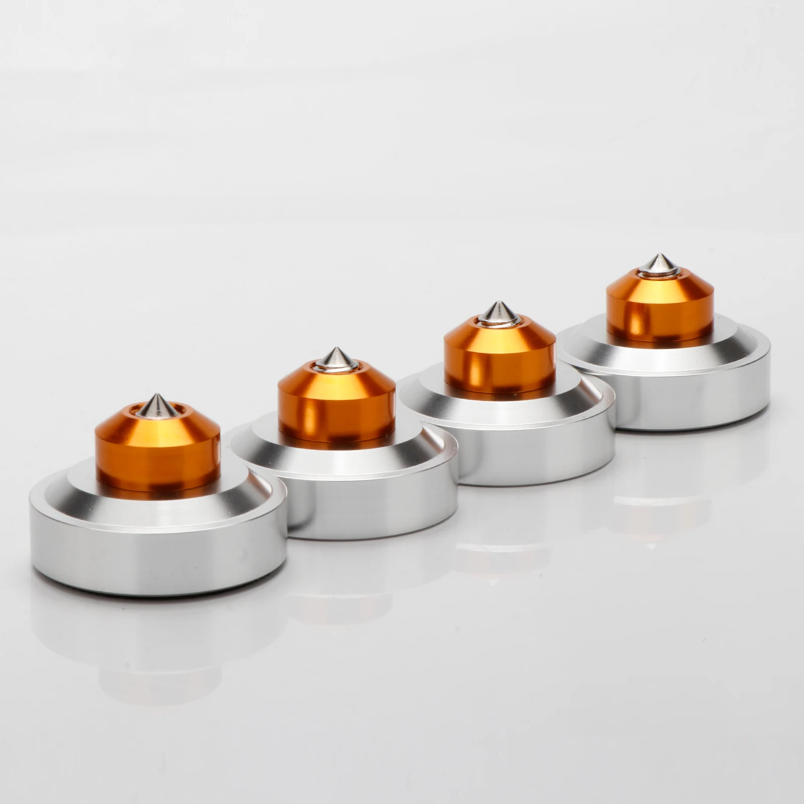 - Set includes four CNC-machined solid aluminum alloy spikes with glossy anodized finishes in silver or black, offering a sleek and durable look ideal for sophisticated audio setups.