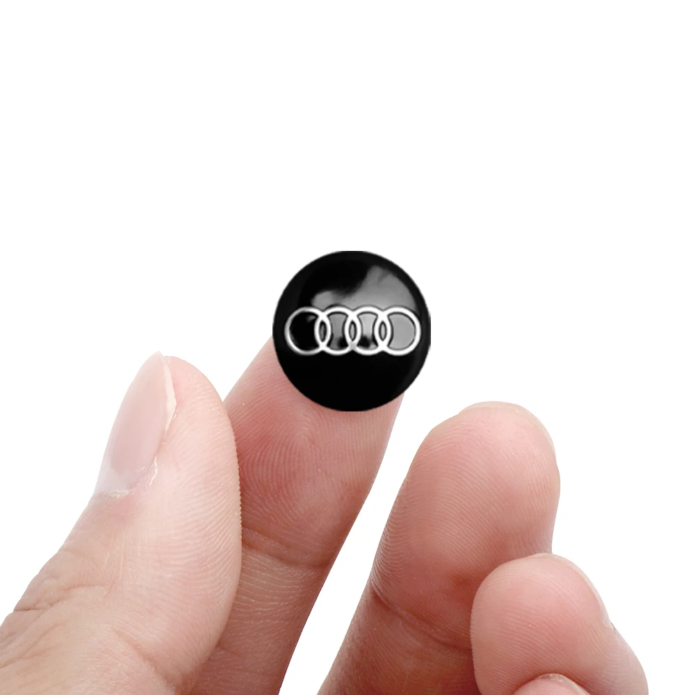 Enhance your vehicle’s appearance with this set of high-quality aluminum logo stickers, each measuring 14mm in diameter with a metallic silver emblem on a matte black background. Weighing approximately 1g per piece, these durable badges are designed for easy peel-and-apply on a wide range of key fobs, including various A3, A4, A5, A6, A7, A8, Q3, Q5, Q7, TT, TTS, TTRS, RS models, and more. The minimalist, polished design adds a touch of sophistication to your car accessories, allowing you to personalize and upgrade your vehicle’s key fob with an elegant, modern look. Available in sets of 2, 5, or 10 pieces.