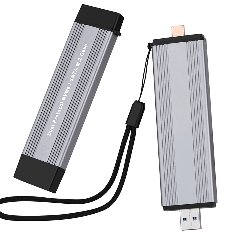 Experience seamless data management with this stylish aluminum alloy M.2 SSD enclosure. Designed for both NVMe PCIe M key/M+B Key and SATA M+B Key protocols, it supports SSD sizes from 2230 to 2280. Its compact, lightweight design makes it perfect for portable use, allowing you to carry and access your data anywhere. The robust aluminum shell not only adds a modern, professional aesthetic but also enhances heat dissipation, extending the lifespan of your SSDs. With support for transfer speeds of up to 10Gbps for NVMe and 6Gbps for SATA drives, you'll enjoy quick, reliable performance whether you're backing up, editing, or transferring large files. Compatible with Windows and Mac OS systems, this enclosure offers versatility for any setup or user.