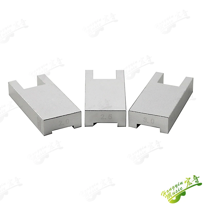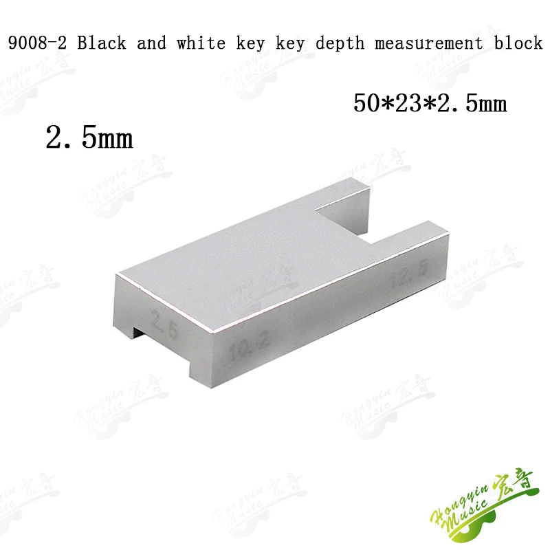Experience precise piano maintenance with this professional-grade black and white key depth measurement block, crafted from durable aluminum alloy. Designed for piano technicians and enthusiasts, this tool helps ensure accurate key depth measurements essential for proper tuning. The sleek, satin-finished surface offers a modern, industrial look while providing a professional feel during use. Featuring three sizes—2.0mm, 2.5mm, and 3.0mm—each with engraved markings for easy identification, it allows for quick, reliable measurements of black and white keys. Weighing approximately 21.5 grams per piece, the blocks are lightweight yet sturdy for precise handling in technical procedures. Invest in this essential instrument to elevate your piano maintenance standards with confidence and accuracy.