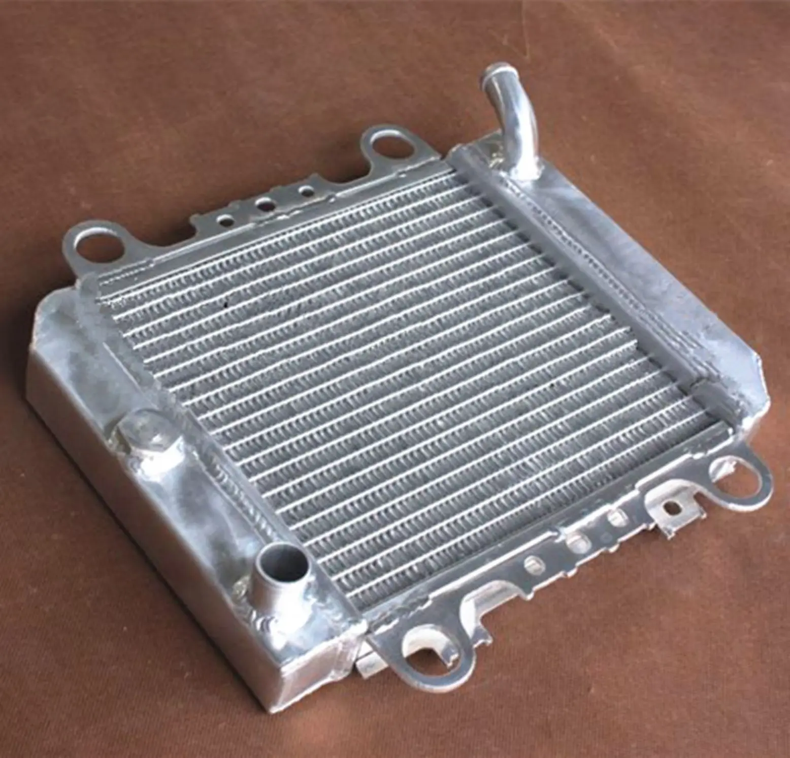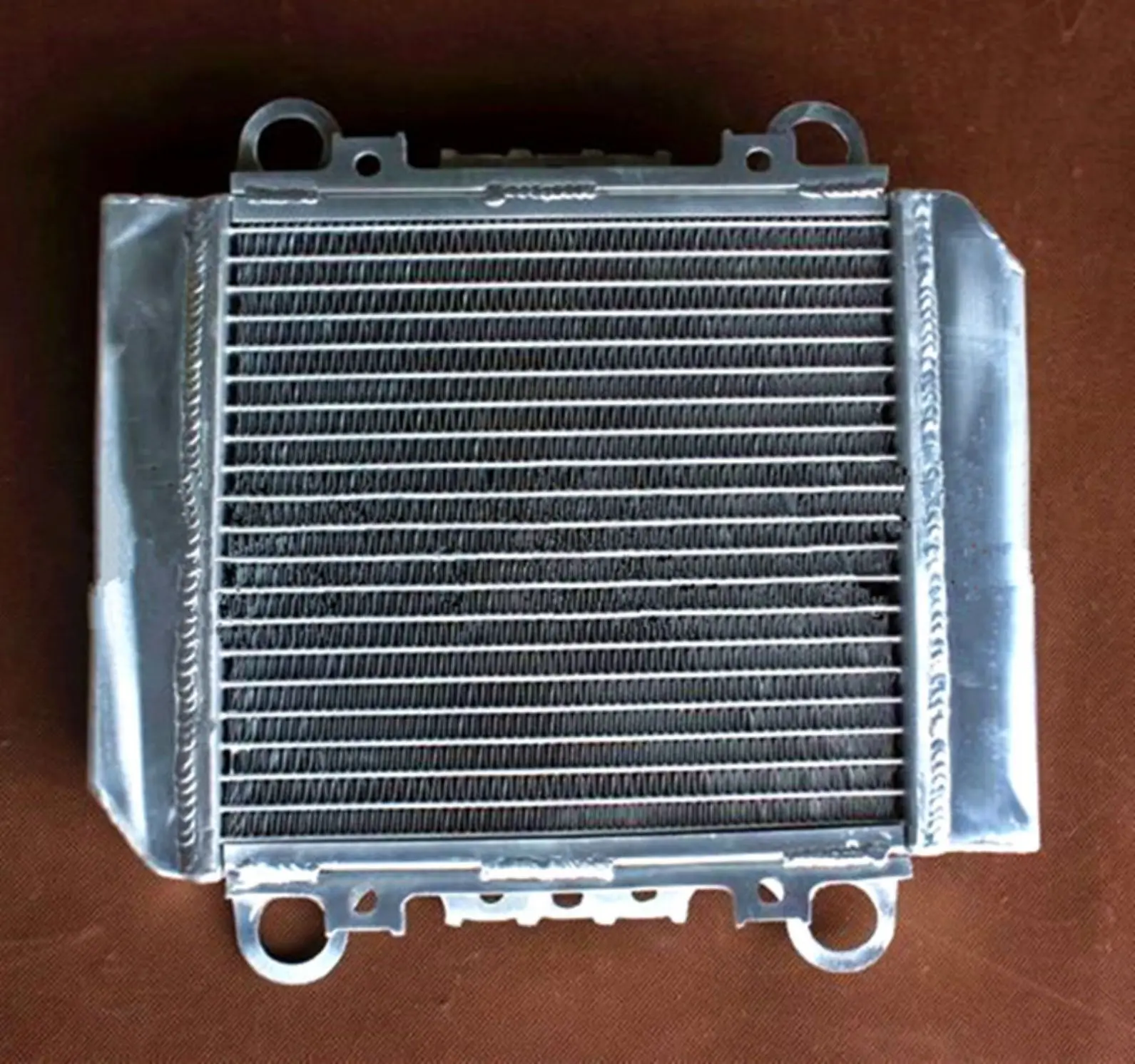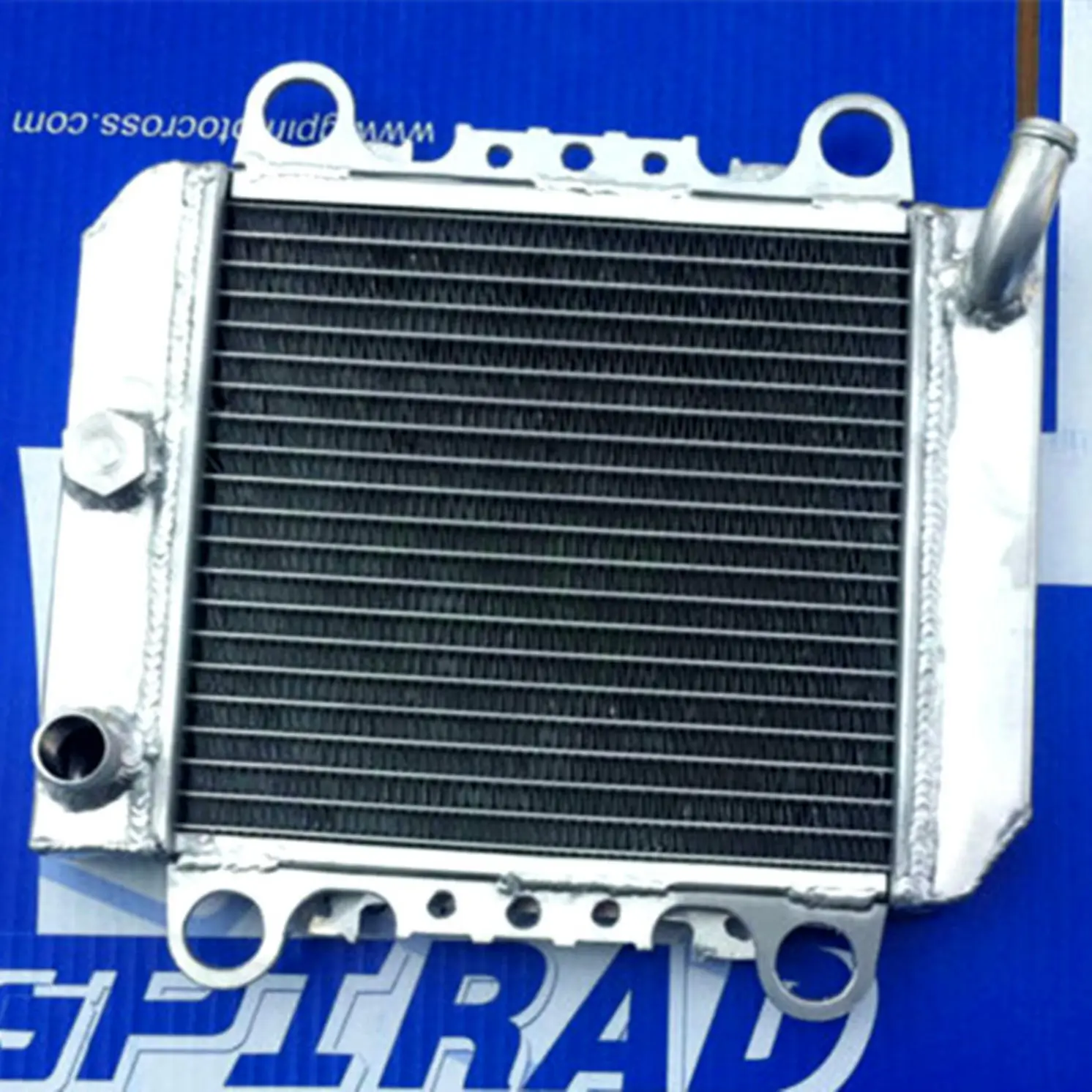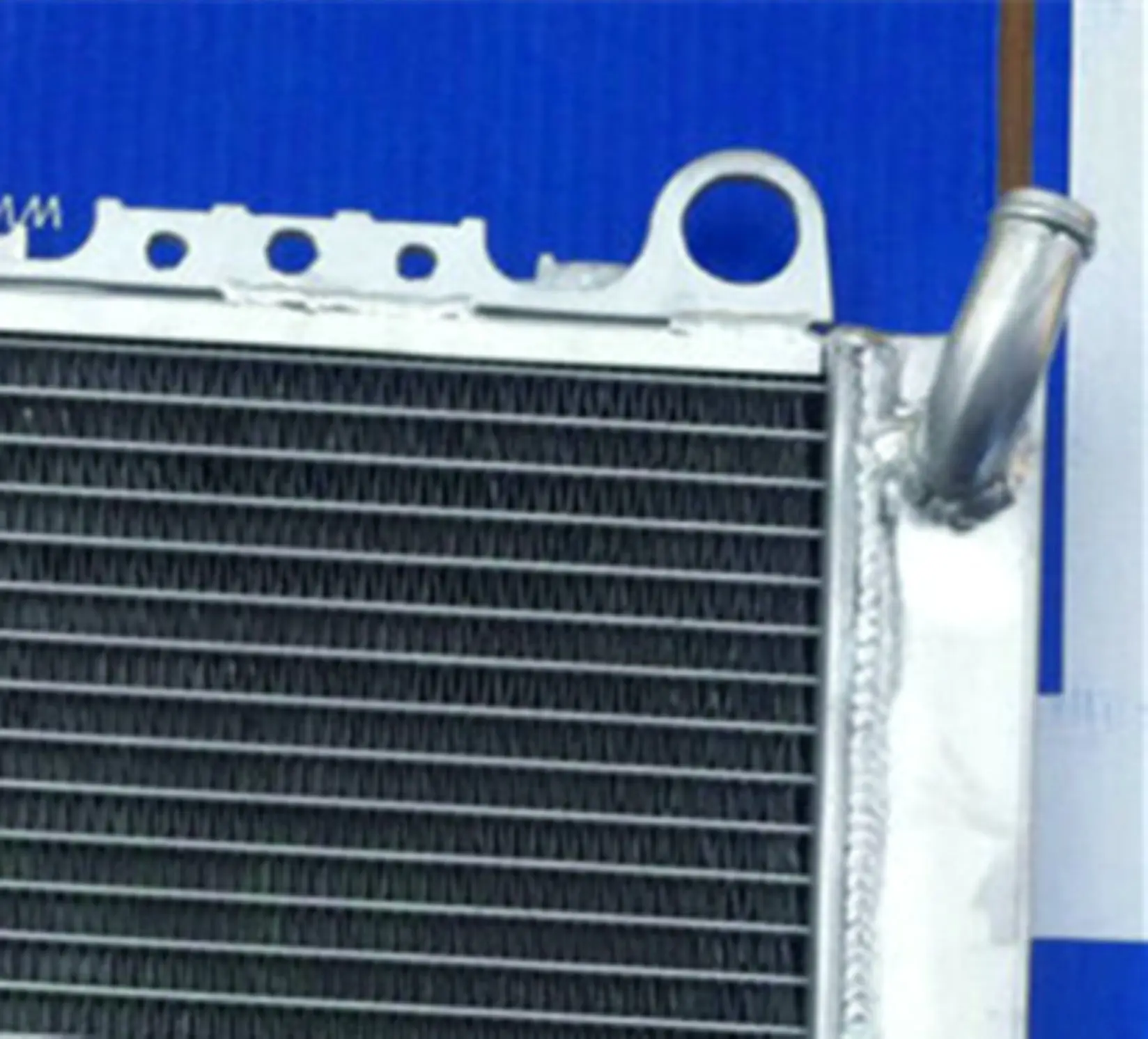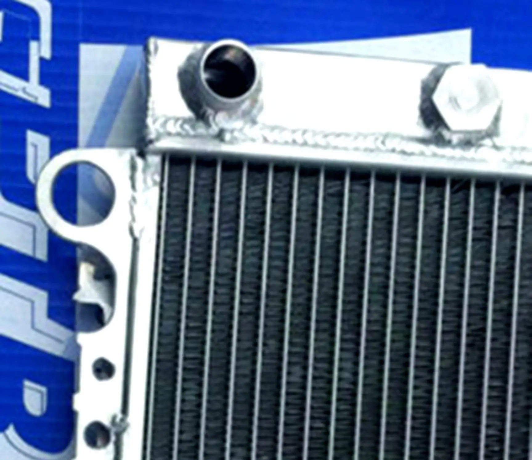 Upgrade your Kawasaki Ninja 250R (1988-2007) with this heavy-duty aluminum radiator cooler, crafted entirely from T-6061 aluminum with a welded core in a vacuum brazing furnace and TIG-welded tanks for durability. Featuring a sleek rectangular design with polished, shiny tanks and dense black cooling fins arranged in parallel horizontal rows, this radiator offers approximately 40% more cooling capacity than standard models and exceeds OEM specifications. Easy to install with minimal modifications, it provides long-lasting performance and enhanced heat dissipation, backed by a 1-year warranty against manufacturing defects. Perfect for those seeking reliable, high-quality cooling performance.