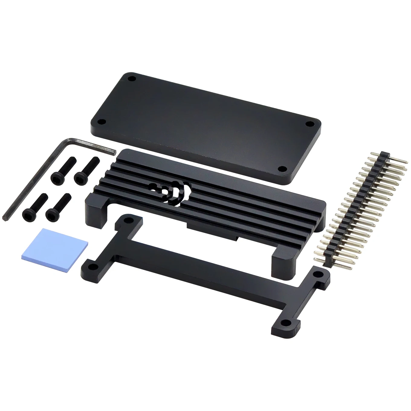 Experience a sleek, modern upgrade for your Raspberry Pi Zero with this premium aluminum alloy housing kit. Designed for optimal passive cooling, it features a high-quality aluminum heat conduction column that efficiently transfers heat away from your device. The minimalist black design, with smooth surfaces and rounded corners, adds a polished touch to your setup while ensuring reliable temperature management. The kit includes precisely shaped black covers, mounting brackets, a grooved mounting frame, and screws, all crafted for easy assembly and durability. Whether you're working on a project or extending your device's lifespan, this housing offers both form and function. It’s the perfect solution to keep your Raspberry Pi Zero operating cool, stable, and protected in style.