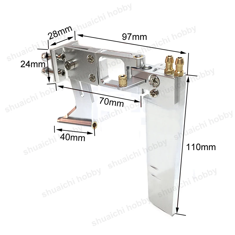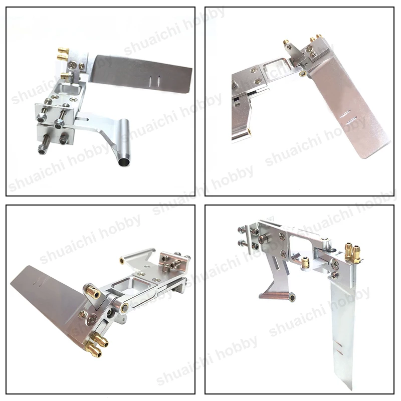 Experience precision craftsmanship with this aluminum alloy dual water suction rudder bracket, designed for RC boats. Measuring 110mm in length with a 65mm frame width, it combines durability and sleek aesthetics. Its polished, reflective surface highlights high-precision CNC manufacturing, ensuring a smooth, durable finish suitable for water environments. The design includes integrated double water inlets for efficient water flow, making it an excellent choice for enhancing your boat’s steering performance. Whether you opt for the simple shaft bracket or the complete assembly kit, you'll enjoy a reliable component that seamlessly integrates with a 4mm shaft system. Elevate your RC boat's control and enjoy a high-quality, durable upgrade that emphasizes craftsmanship and technical excellence.