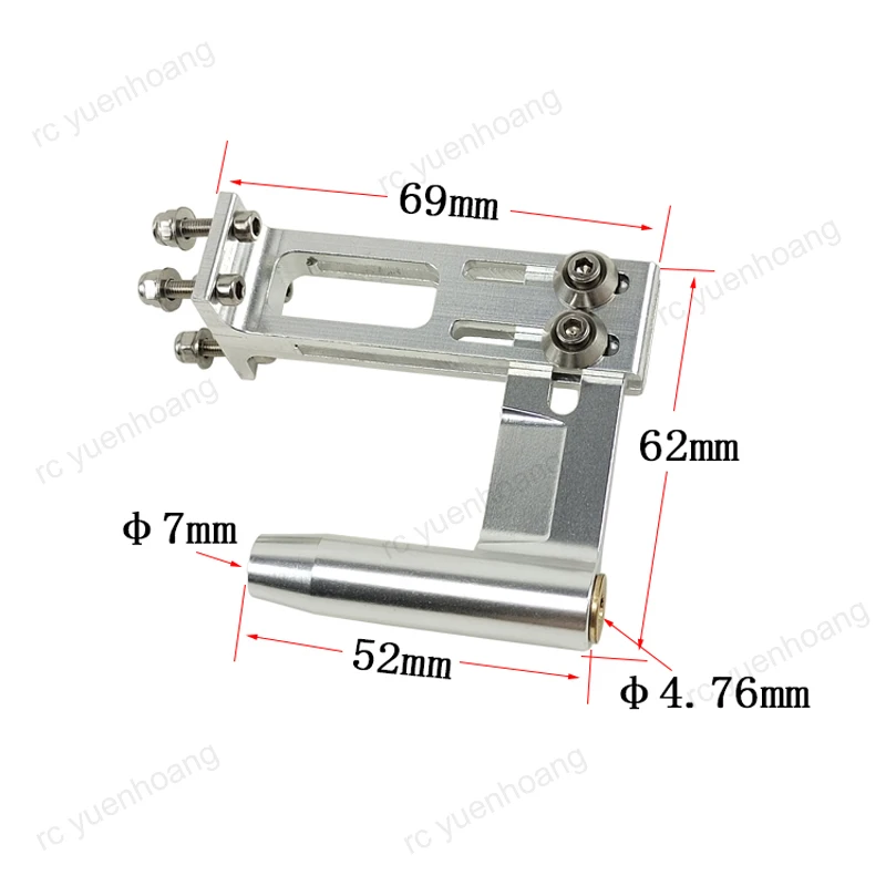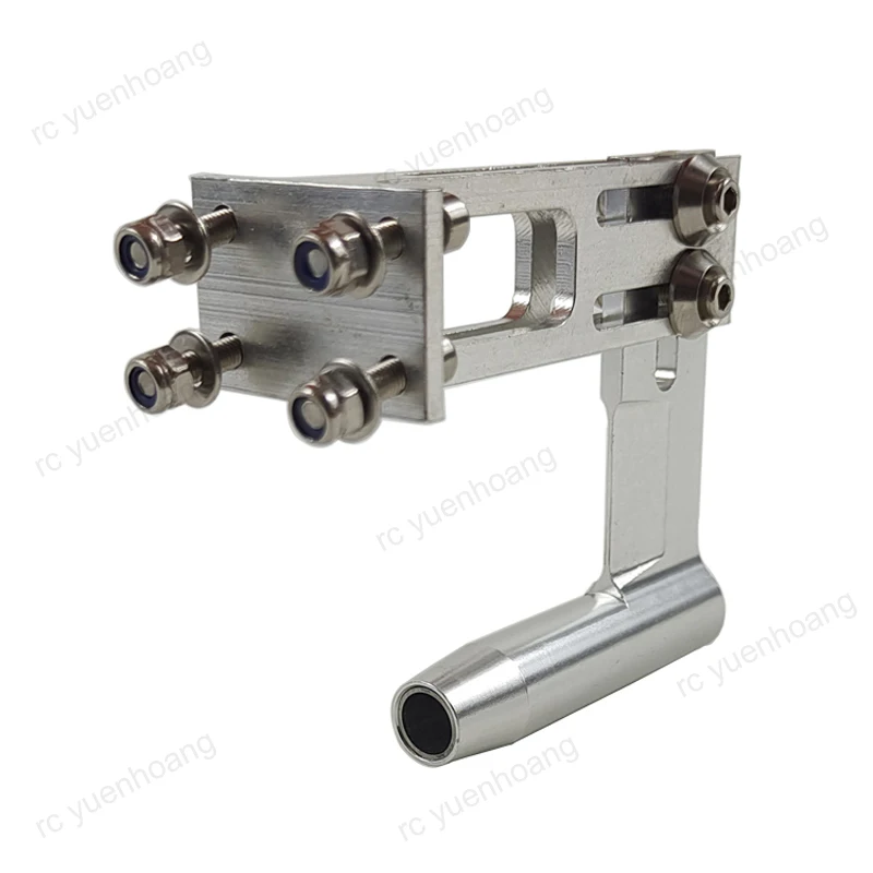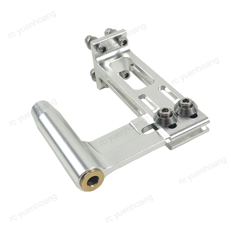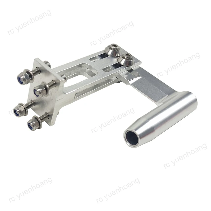 Enhance your RC racing boat with this precision-engineered shaft support bracket crafted from 6061 aluminum alloy through CNC machining and anodizing. Featuring a sleek matte silver finish, it supports a flexible shaft diameter of 4.76mm (3/16 inch) and measures 69mm x 62mm x 52mm with a 62mm height, designed without ball bearings for smooth operation. Its industrial aesthetic includes elongated slots and exposed hexagonal bolts for easy adjustments, while the polished roller provides secure guidance for the shaft. Built for durability, this robust, minimalist support bracket guarantees stability and precision in DIY remote control boat setups, elevating your racing experience.