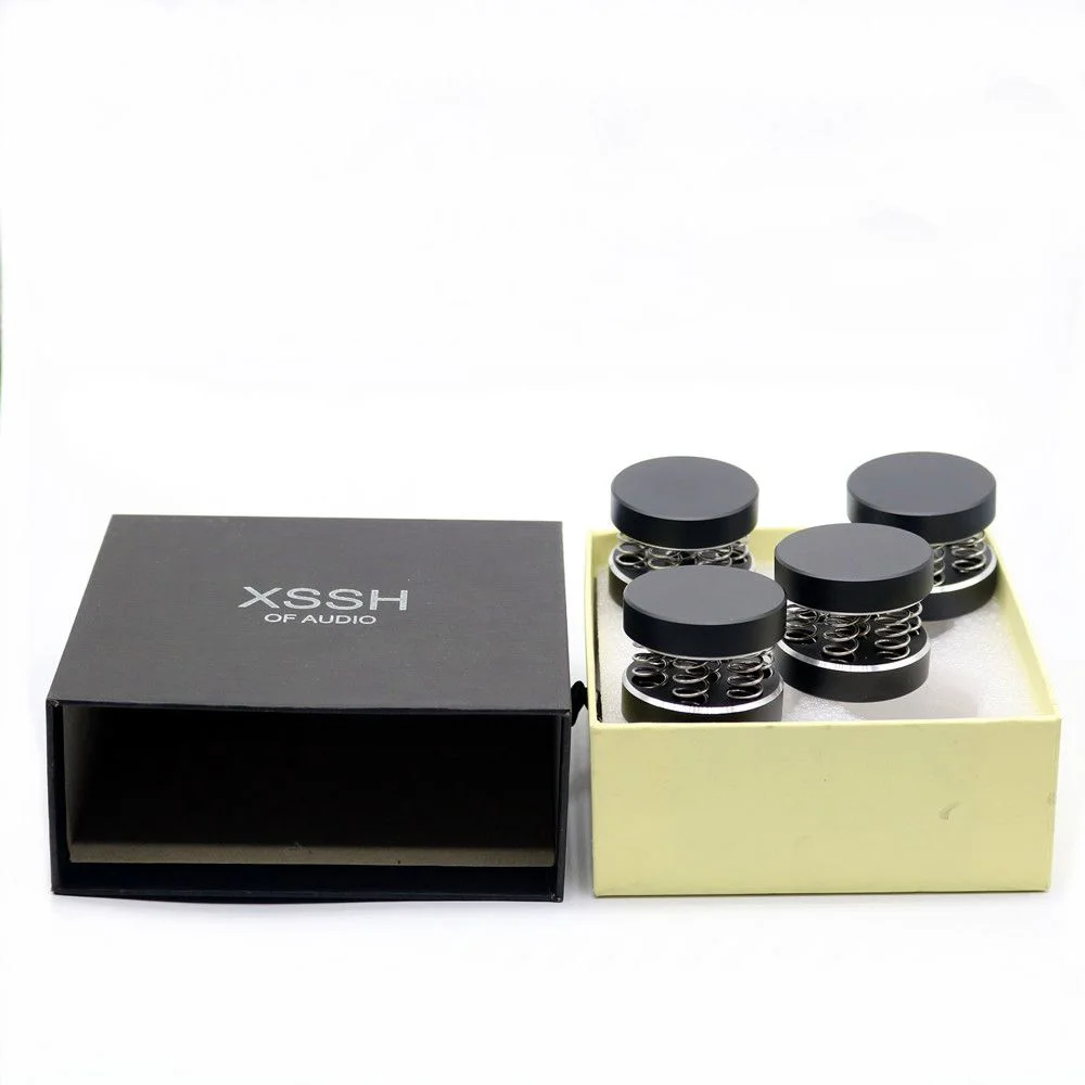 Transform your audio setup with this set of four high-quality aluminum alloy spring foot pads. Designed to enhance vibration damping and improve sound clarity, these pads combine CNC-machined precision with durable materials. Featuring an integrated spring shock absorption mechanism, they help reduce unwanted vibrations from amplifiers and speakers, resulting in a cleaner, more detailed sound. Available in sleek black or elegant silver finishes, each cylindrical pad has a diameter of 44mm and height of 38mm, making them a perfect fit for various audio equipment. By adjusting spring tension, you can optimize the dynamic response and spatial depth of your sound, giving you an immersive listening experience you can trust.