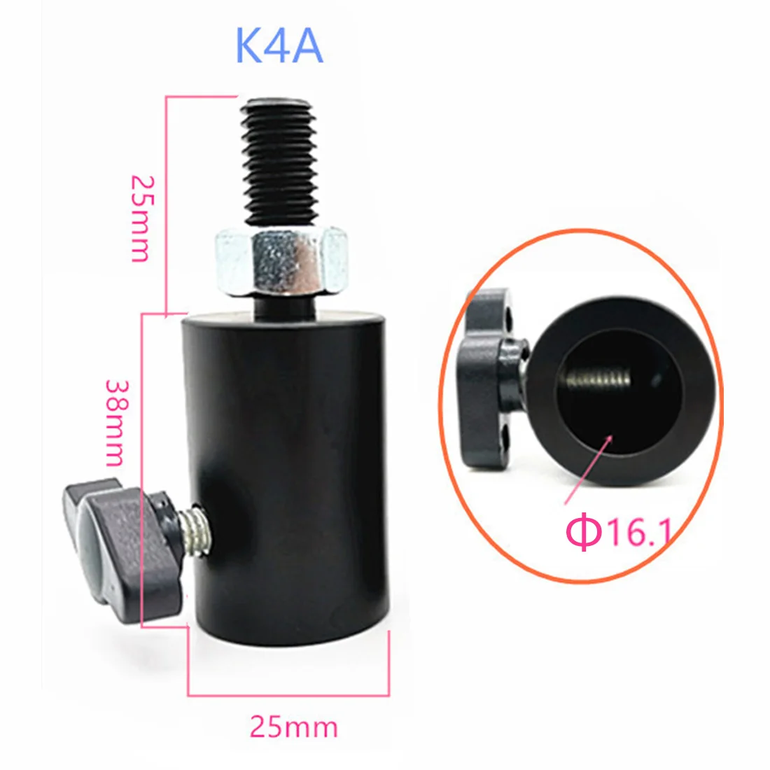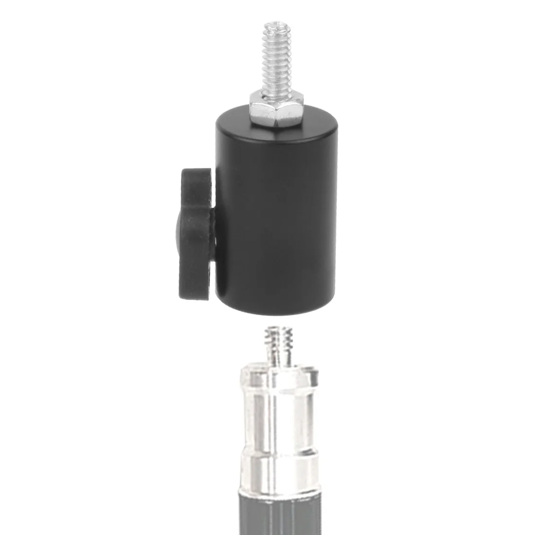 This versatile aluminum alloy tripod light stand converter features a compact, cylindrical design with dual interface jacks for horizontal and vertical positioning, allowing flexible attachment of LED lights, flashes, or monitors. It offers compatibility with 1/4″ and 3/8″ threaded accessories, with hole diameters of 16mm or 18mm, and screw mount options including 1/4″ and 3/8″. The converter is available in models with heights of approximately 38mm or 53mm, widths around 25mm or 49mm, and screw lengths of 6mm or 20mm, weighing between 60 and 76 grams. Its durable anodized finish ensures reliability for professional photographic and studio setups.