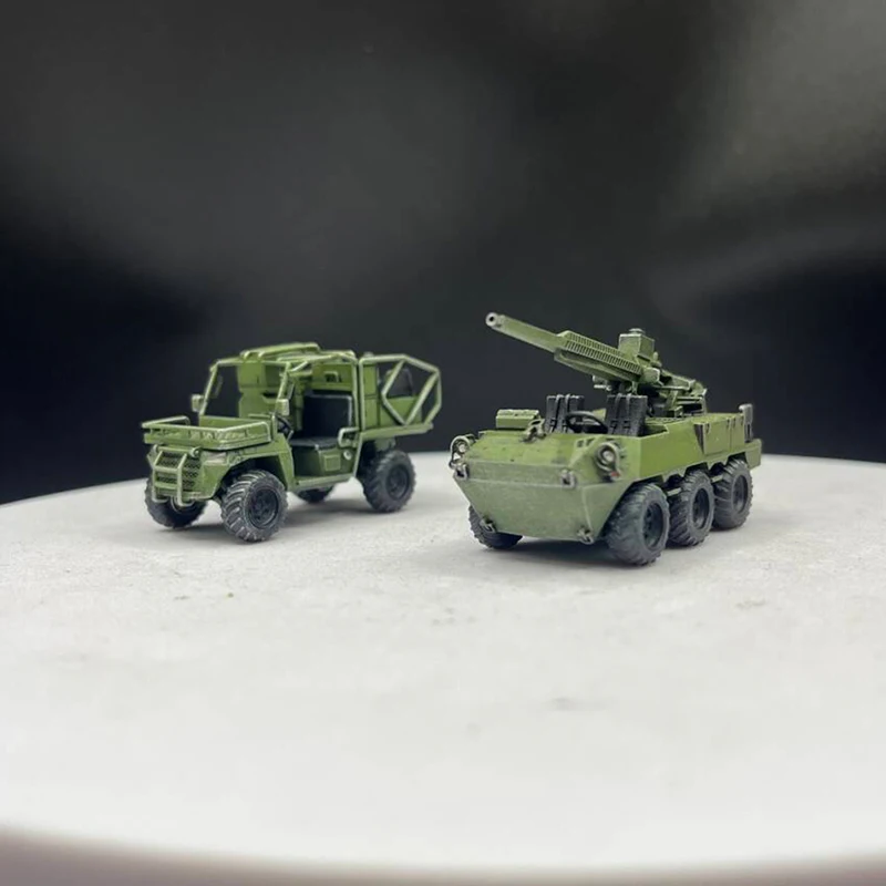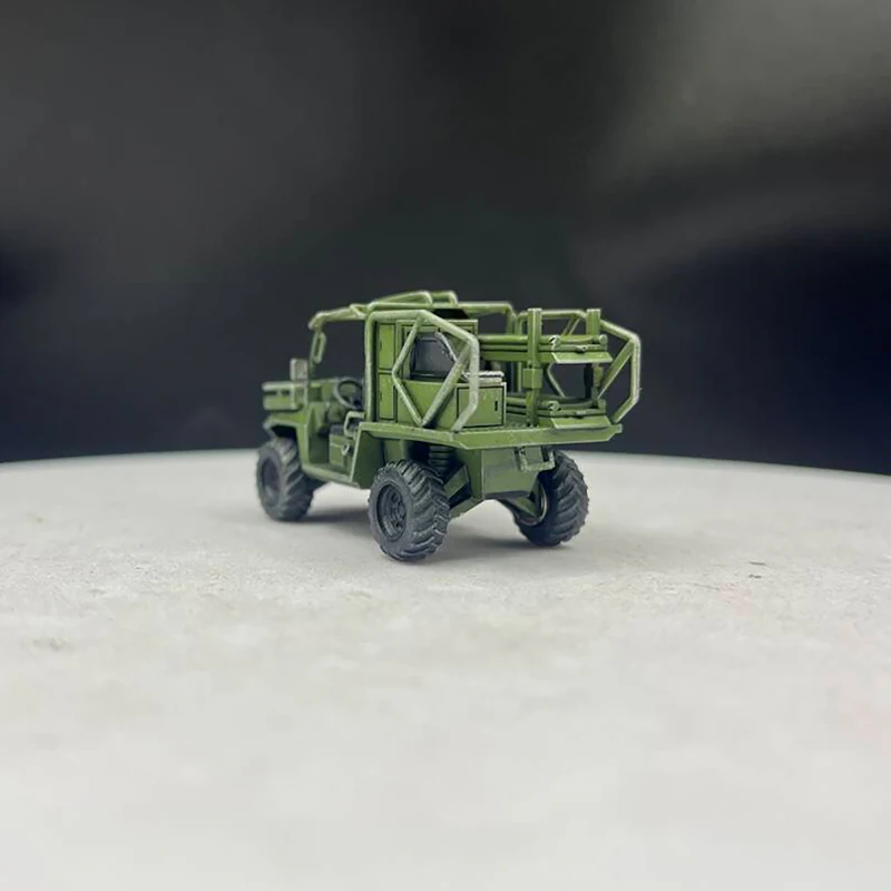 This exquisite AM 1/72 Scale Bobcat All-terrain Vehicle CS-SM8 showcases remarkable craftsmanship in a stunning vibrant green color. Made from high-quality resin, this detailed static display model features a compact and rugged design, ideal for collectors and enthusiasts. With an open cabin revealing intricate details like the steering wheel and seats, this all-terrain vehicle is a testament to precision design. Its chunky, textured tires enhance its adventurous appearance, while the overall robustness invites admiration. This fragile model is perfect for display, capturing the essence of an all-terrain vehicle.