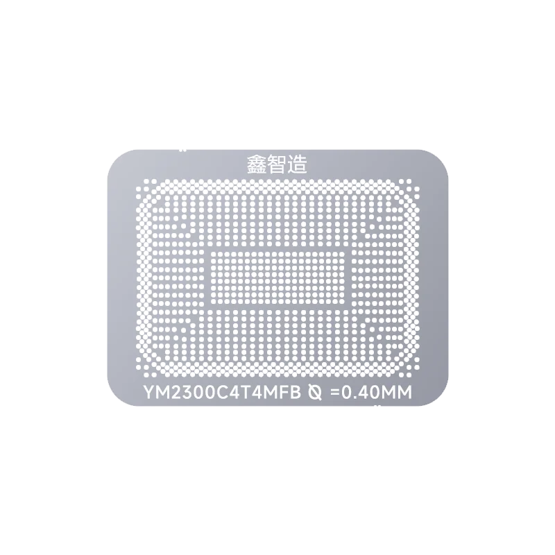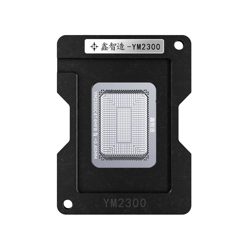 The XZZ BGA stencil is a high-precision reballing and tin-planting platform designed for AMD Ryzen processors, including R5, R7, R3, R9, and models such as 4500, 4800H, and 4700U. Crafted from durable materials with a 0.40mm hole size, it features a sleek rectangular design with rounded corners for optimal handling. The kit includes a magnetic four-magnet base and a positioning plate, ensuring accurate alignment during direct heating processes. Its industrial aesthetic combines metallic finishes with matte black components, emphasizing durability and professional craftsmanship. Perfect for experienced enthusiasts, this easy-to-use tool guarantees consistent, precise results for reballing and tin-plating projects.