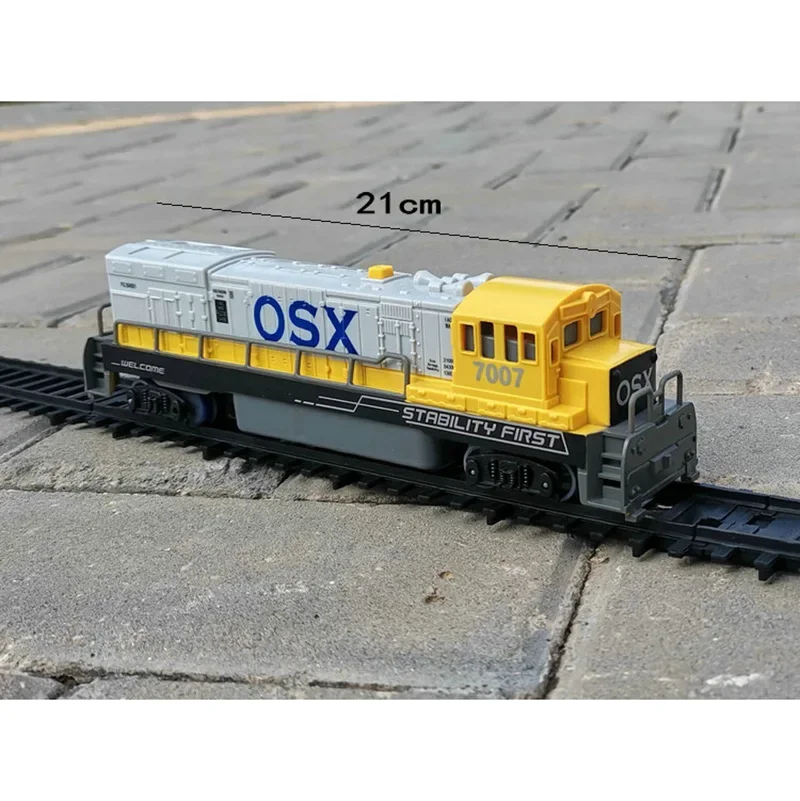 Experience the dynamic look of this American Classic GP40 train model, beautifully crafted with vivid colors and detailed markings. Measuring approximately 21cm in length at a 1/87 scale, it offers a realistic and eye-catching appearance perfect for both display and play. The model features immaculate white surfaces accented with bold blue stripes and the striking “OSX” branding, complemented by a bright yellow stripe with clear lettering. Its streamlined design and glossy finish emphasize modern aesthetics. Functional headlights emit bright light, adding realism, while authentic train sounds enhance engagement. Constructed from durable ABS plastic, it’s designed for collectors, enthusiasts, and children aged 14 and over who appreciate intricate and vibrant train models for gifting or display. Elevate your collection with this appealing and reliable model.