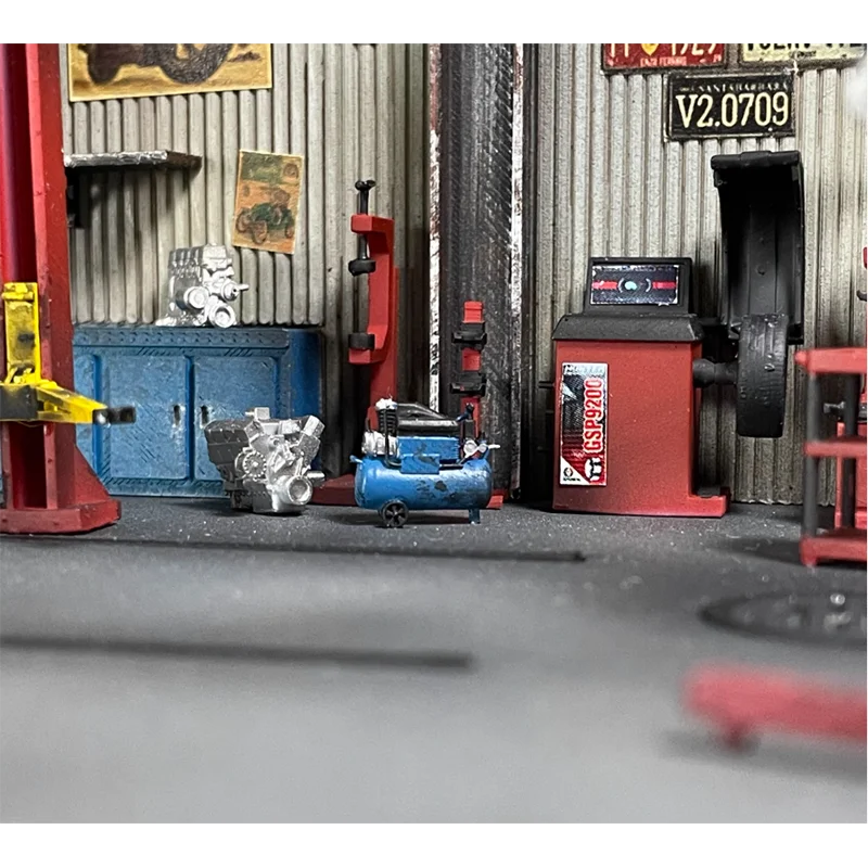 Visualize your space transformed by this vibrant, detailed miniature garage scene, showcasing a lively automotive environment. Perfect as a gift or a statement piece, this realistic model adds professional flair to any collection, office, or home. With its intricate details and nostalgic vibe, you’ll enjoy admiring the craftsmanship and vibrant colors every day. Don't wait—bring this authentic American garage scene to your display and relive the lively workshop atmosphere you love. It's more than a model; it's a conversation starter for any automotive enthusiast.