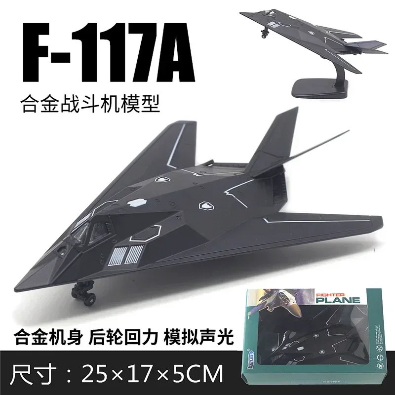 Step into the world of military aviation with this meticulously crafted diecast model of the iconic American Nighthawk F-117A stealth combat aircraft. Made of durable metal, this striking miniature captures the sleek, angular design and stealthy silhouette that define the original fighter jet. Its matte black finish emphasizes its modern, aggressive aesthetic, complemented by white geometric markings and insignia that add visual detail. The sharply angled delta wings, tall raked vertical stabilizers, and streamlined nose highlight the aircraft’s precision engineering. Perfect as a wall ornament or an engaging collectible, this model is suitable for enthusiasts aged 14 and above, bringing a piece of aviation history right into your space with authenticity and style.