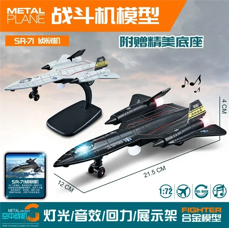 Experience the realism of a 21cm diecast American reconnaissance fighter aircraft, crafted from durable metal with detailed surface features, panel lines, and realistic landing gear. Available in black, white, black-boxed, and white-boxed options, this model features bold markings, such as red outline details, insignia, “USA” or “U.S. AIR FORCE” labels, and a sleek design with a pointed nose cone and transparent canopy. Suitable as a collectible wall ornament or a sophisticated toy for enthusiasts aged 14 and above, it offers a 1:1 scale with finely recreated military-inspired details, making it a perfect display piece for aviation lovers and collectors alike.