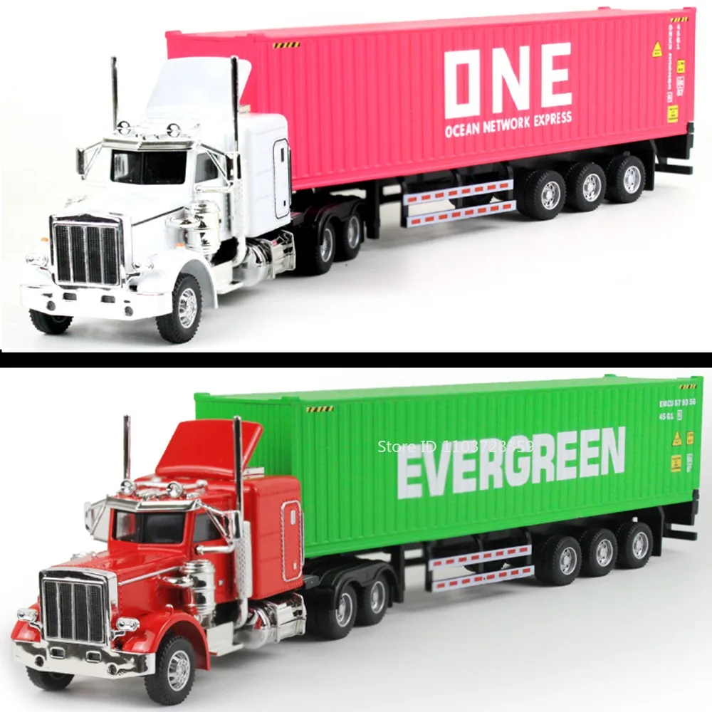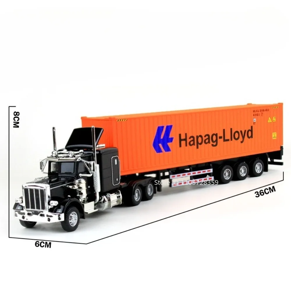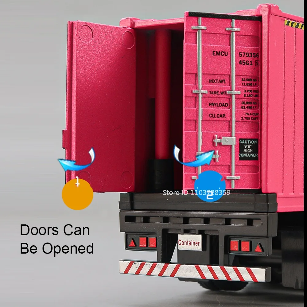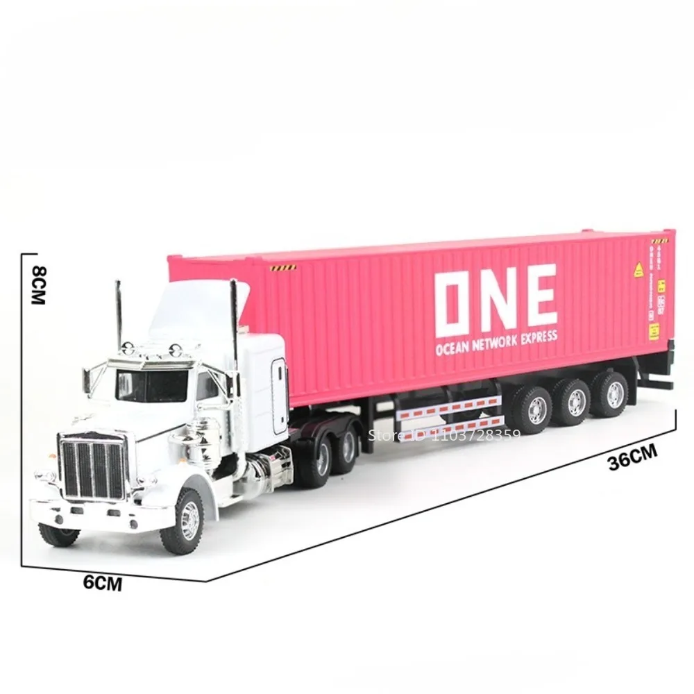 Imagine owning this stunning, highly detailed American Scania Container Truck model, perfectly capturing the robust industrial aesthetic with vibrant colors and intricate surface textures. Made from durable alloy, the truck features a sleek cab design with realistic decals and sharp, polished finishes. The vivid container, with its vertically ridged steel look and corner fittings, adds authenticity and visual appeal. With functional lights and sound, sliding movement, and opening doors, this model brings your collection to life. Its precise craftsmanship and detailed components make it an impressive display piece or a remarkable gift for adult enthusiasts who love high-quality, realistic vehicle models. Visualize yourself showcasing this iconic truck in your collection today.