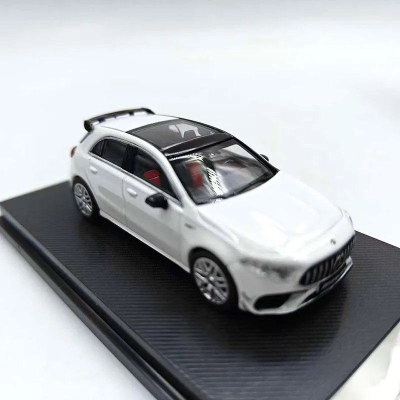 Experience the thrill of owning a meticulously crafted replica of the AMG A45 S with this detailed diecast model. Sized at 1:64 scale, it features a sleek white exterior complemented by intricate design details, including a prominent front grille, headlight accents, sporty body lines, and a rear spoiler that highlight its high-performance aesthetic. The model's full-opening doors reveal a bold red interior, offering a striking contrast to the exterior, while multi-spoke wheels add to its realism. Made from high-quality alloy and plastic, this collectible piece is perfect for display, gifting, or enhancing your automotive collection. Its precision craftsmanship captures the essence of the original vehicle, bringing a touch of luxury and sportiness to any setting.