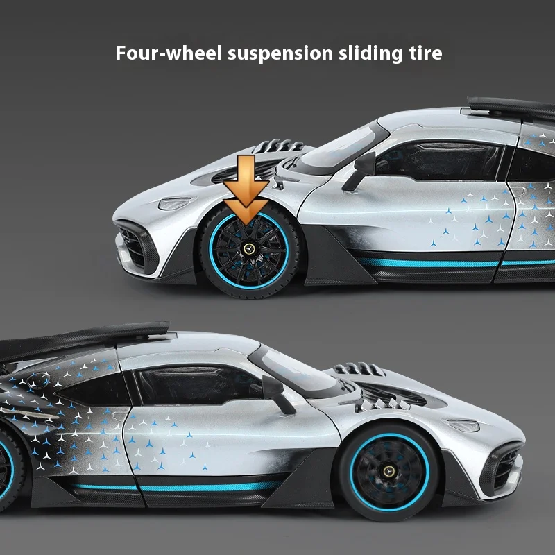 Indulge in the thrill of owning this remarkable AMG ONE Super Sports Car model. Not only is it a celebration of automotive design, but it also inspires your imagination and enhances your collection. Picture your display featuring this iconic piece, capturing the admiration of all who see it. Whether it’s a personal treasure or a gift for a fellow enthusiast, this model is sure to impress and evoke passion for performance and design. Make this exquisite model a part of your collection today!