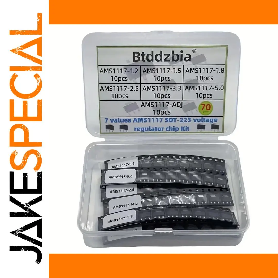 - The kit contains 70 surface-mount AMS1117 regulators in SOT-223 packages, supporting multiple voltage outputs in a compact, organized container.
