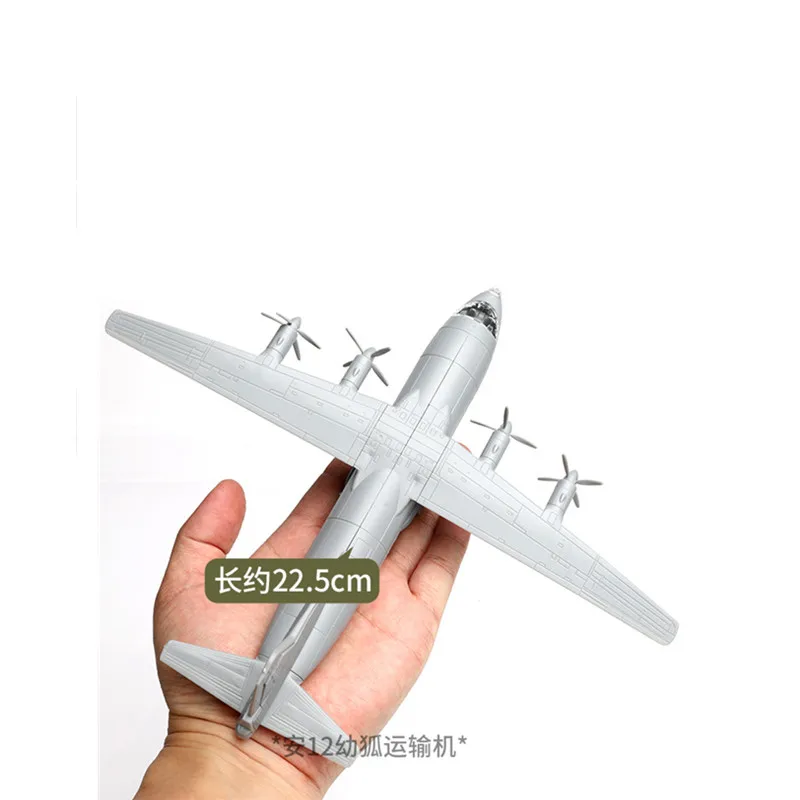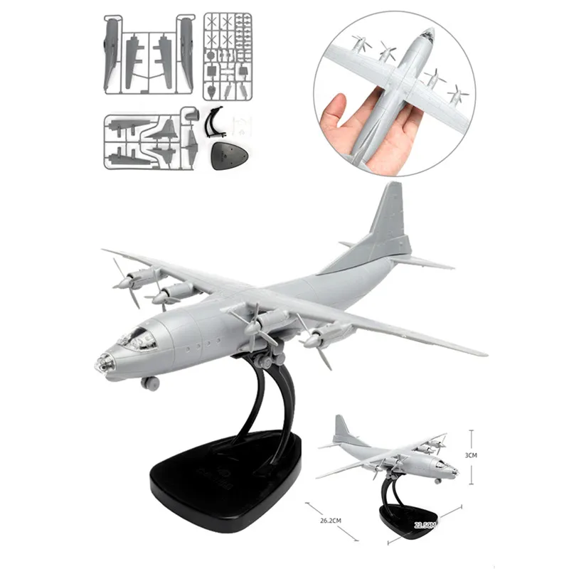 Discover the exquisite 1:144 scale assembly model of the An-12 military transport aircraft, measuring approximately 23 cm in length and consisting of 43 meticulously crafted plastic parts. Designed for enthusiasts and collectors aged 12 and above, this model captures the aircraft’s sleek, streamlined fuselage, high-wing configuration with four engines and propellers, and detailed panel lines. The realistic transparent cockpit canopy, tall vertical stabilizer, and gently upward-sloping tail surfaces add to its authentic appearance. Supported by a sleek black stand, this finely detailed replica offers a sophisticated showcase piece that brings the mechanical elegance of the An-12 aircraft to life in your collection.