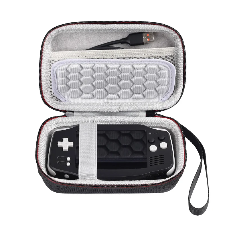 Imagine confidently protecting your cherished gaming device with this sleek, durable hard EVA case. Its sturdy waterproof shell ensures your Anbernic RG34XX remains safe from bumps, shocks, and water. The smooth matte black exterior, accented with bright red stitching on the zipper, exudes modern sophistication. The lightweight design offers excellent portability, complemented by a convenient hand strap. Inside, the soft, gray lining and molded interior fit your console perfectly, while the mesh pocket keeps accessories organized and easily accessible. Whether on travel or daily use, this case combines style, function, and robust protection, making it an essential accessory for serious gamers who value quality and security.