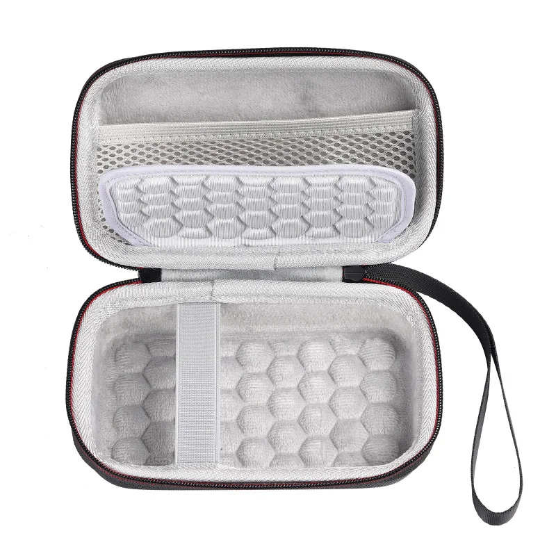 - Includes a mesh pocket with a white elastic trim and gray honeycomb-pattern partition, perfect for storing cables, chargers, or extra game cartridges.