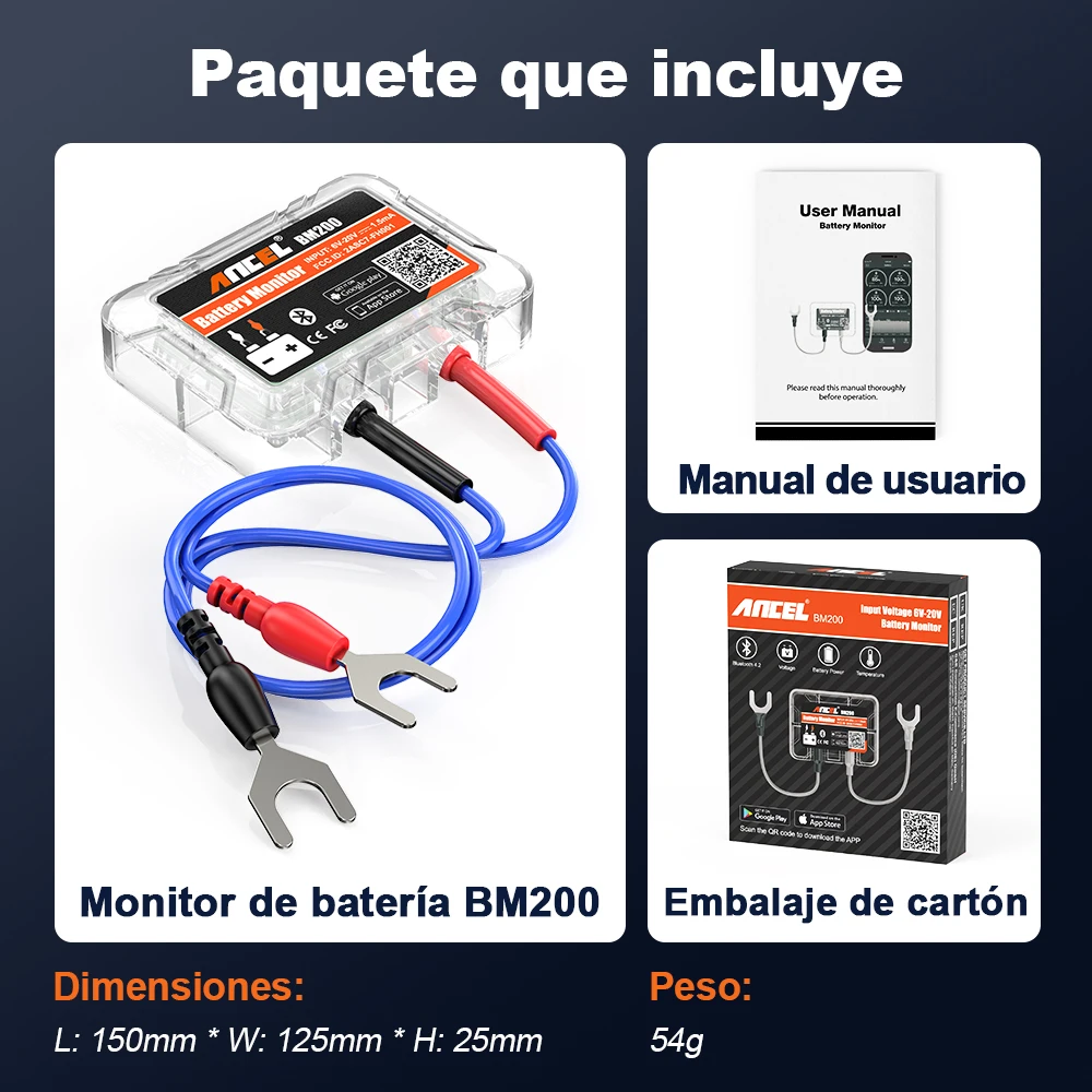 The ANCEL BM200 12V Battery Monitor is a cutting-edge battery tester designed for reliable monitoring of your vehicle’s battery health. Featuring Bluetooth version 4.2, this device supports all iOS and Android smartphones with Bluetooth 4.0. It operates with an input voltage range of DC 6V to 20V, providing an impressive voltage accuracy of ±0.03V (9V-16V) and average working current of 1.5mA. Built to last, the monitor withstands temperatures from -40°C to 90°C and is waterproof with an IP67 rating. Compact dimensions of 55mm x 41mm x 12.5mm make it convenient to install while managing up to 4 devices simultaneously. Ideal for all 12V batteries including lead-acid, AGM, GEL, and EPB, it includes a free app for tracking battery levels, temperature, voltage, trip records, and GPS features.