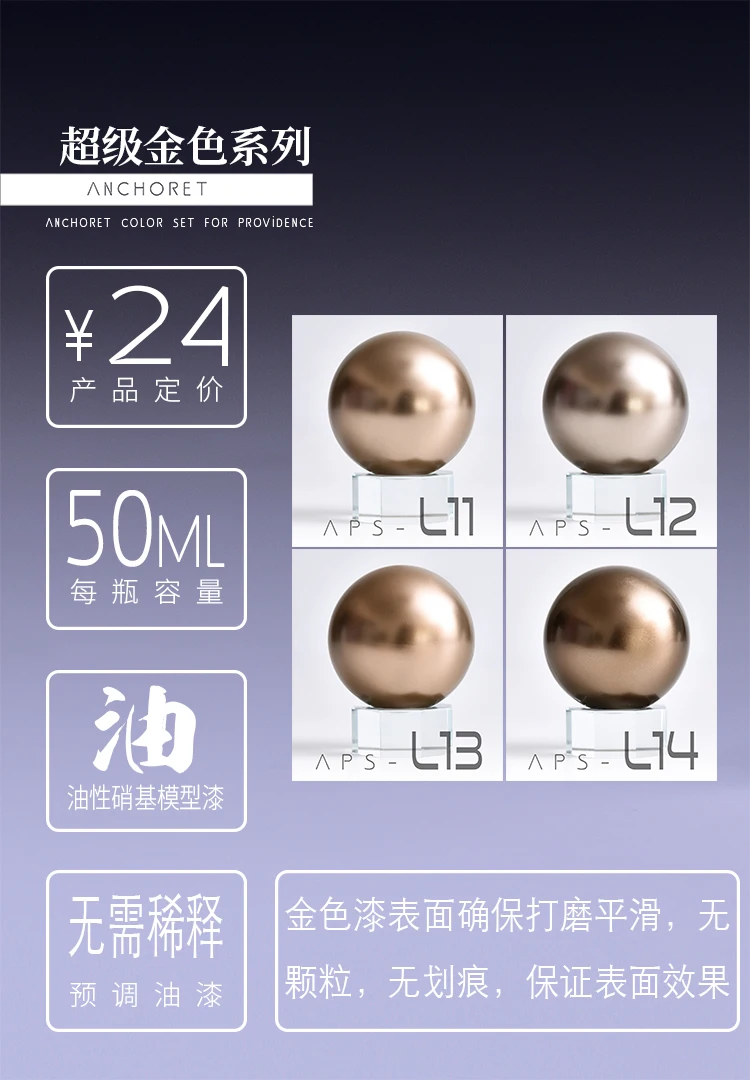 Transform your Kodak models with the stunning ANCHORET AT Metallic Paint set. This pre-mixed paint is designed specifically for precise and vibrant coloring without the need for dilution. Each of the four spherical containers boasts unique metallic finishes ranging from a brilliant reflective gold to a deeper bronzed tone, allowing you to elevate your creative projects with elegance. Picture the beautiful accents these shades will bring as you effortlessly apply them to your models, enhancing their overall aesthetics and sophistication. Bring the shine and brilliance of true metallic artistry into your collection today.