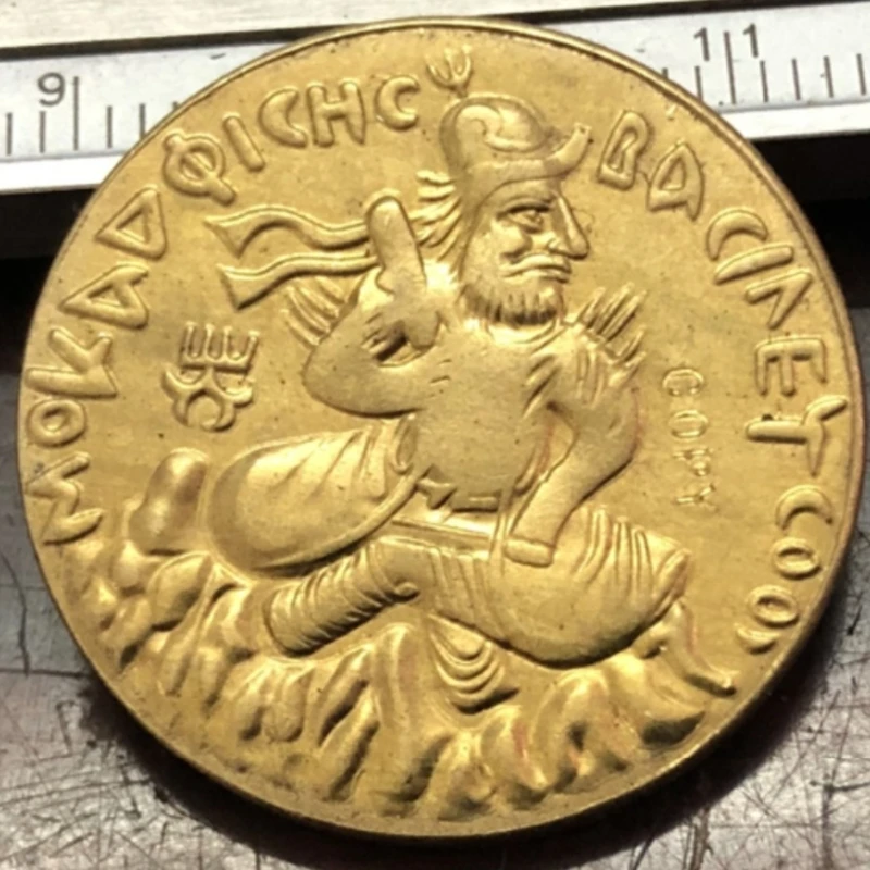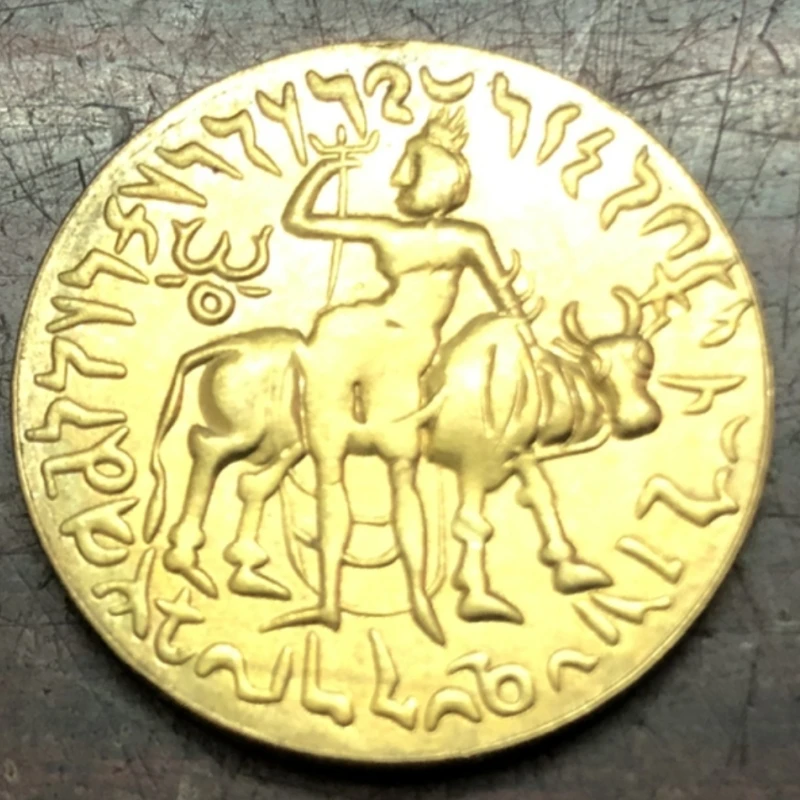 Experience the allure of history with this intricately cast replica of an ancient Indian silver Dinar from the Kushan era, dating from 1840 or earlier. Made from metal using traditional casting techniques, it features an antique European style with detailed animal motifs and a textured, aged finish that evokes genuine antiquity. The coin’s design showcases a regal or mythological figure surrounded by stylized inscriptions, emphasizing craftsmanship and historical authenticity. Perfect for collectors and enthusiasts, this copy coin allows you to own a piece of ancient history with its rich, detailed iconography and vintage aesthetic, adding a striking historical touch to your collection.