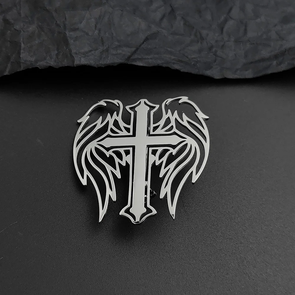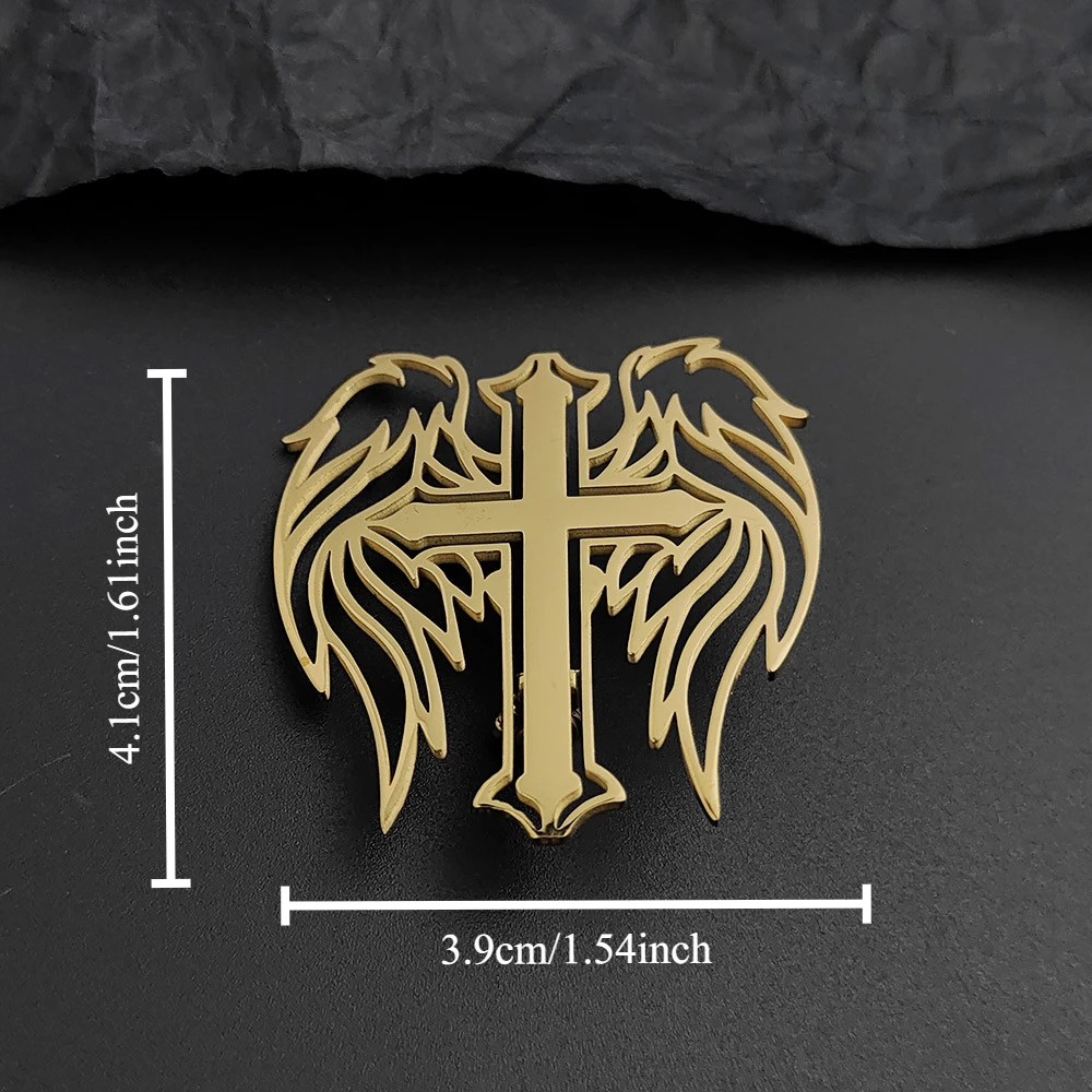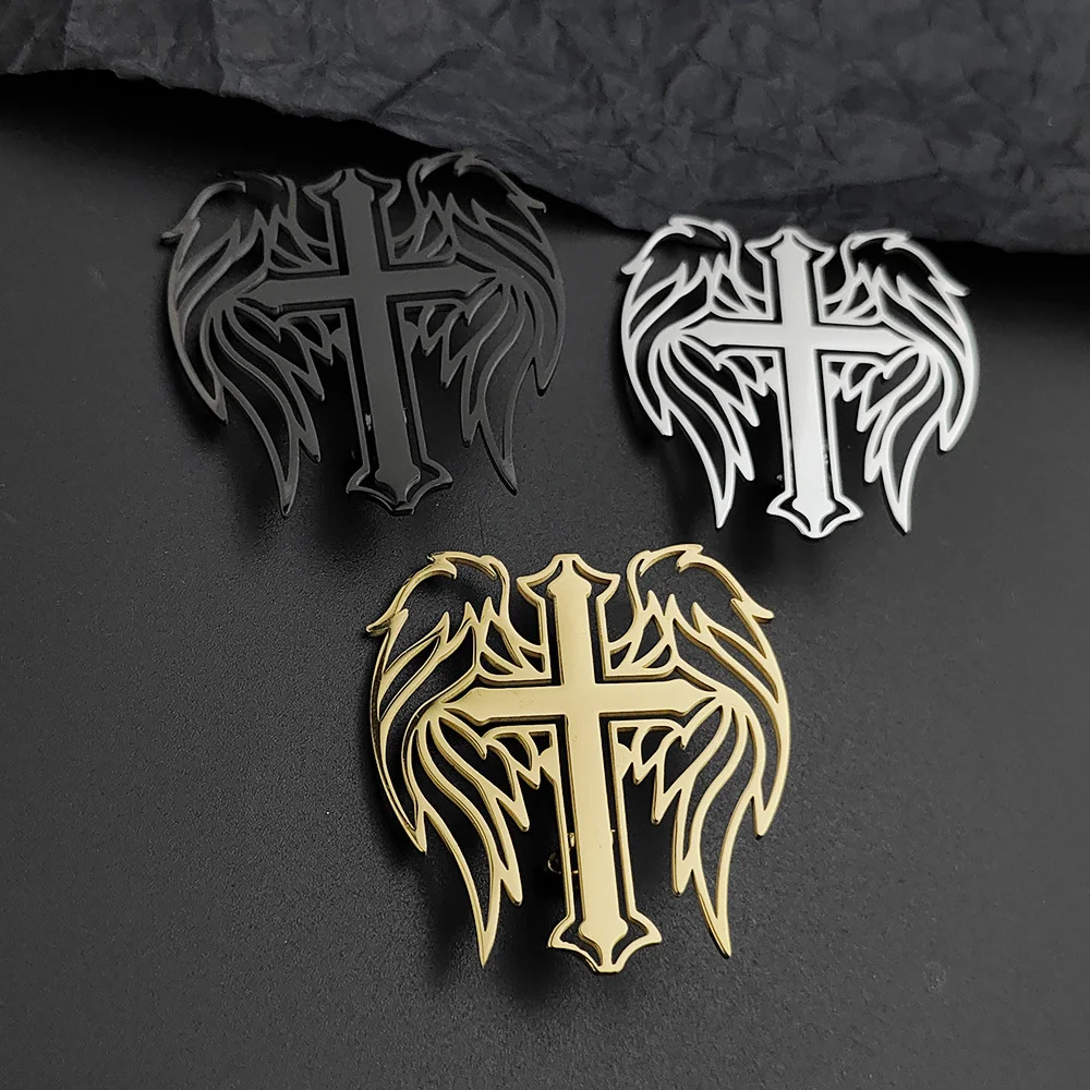 Imagine adding a powerful touch to your style with this unisex punk-inspired angelic cross pin. Crafted from polished alloy, it features a vintage-inspired central cross with pointed ends and intricate embossed details. Flanking the cross are symmetric, hollow-out wings with layered feathers and sharp edges that evoke movement and rebellion. Available in shimmering Gold, shiny Silver, or sleek Black, each color enhances its bold gothic and trendy appeal. Whether you attach it to a jacket, backpack, or hat, this accessory elevates your personal style with a rebellious yet elegant vibe. Its polished finish reflects light beautifully, making it perfect for those who want a striking, statement piece that speaks to their individuality.