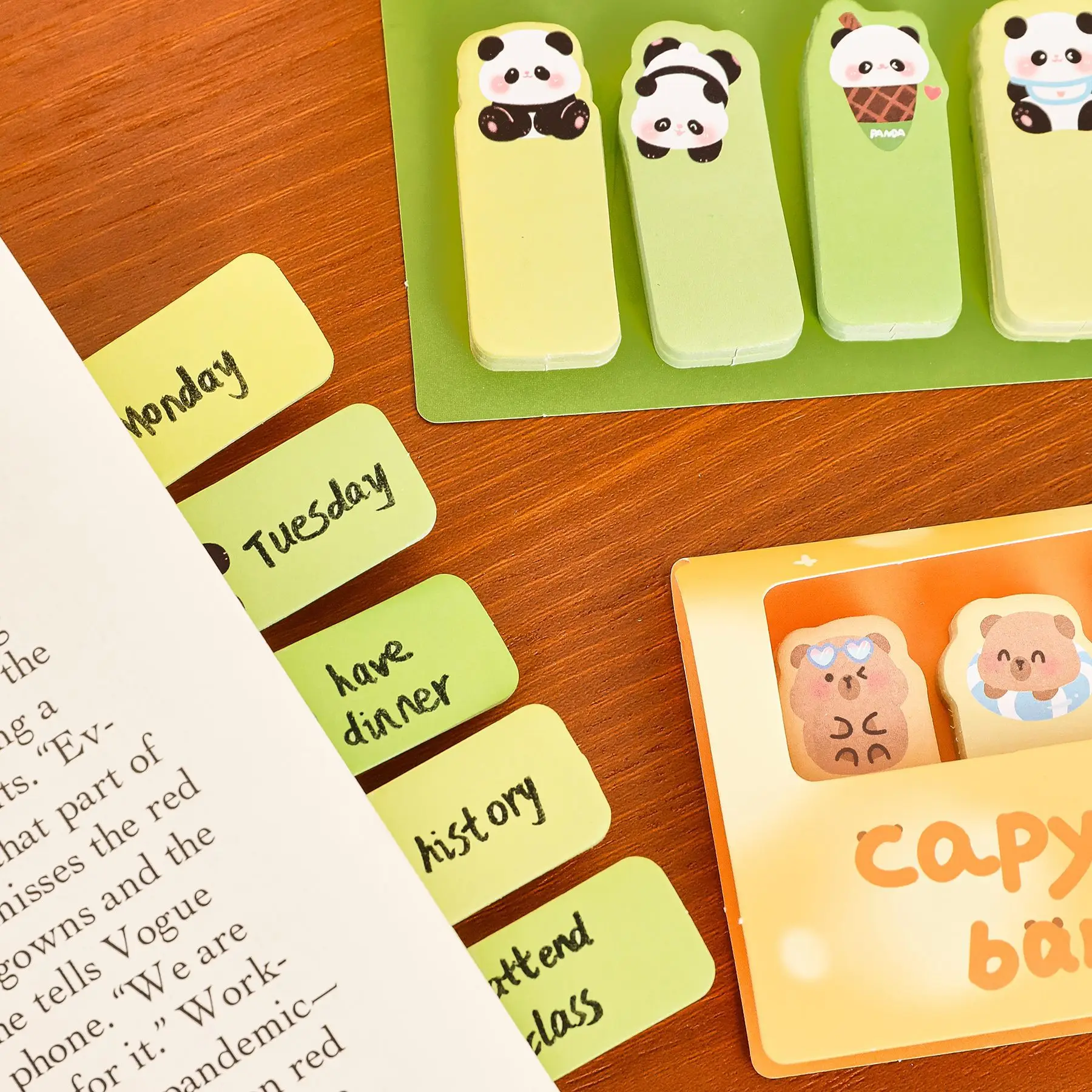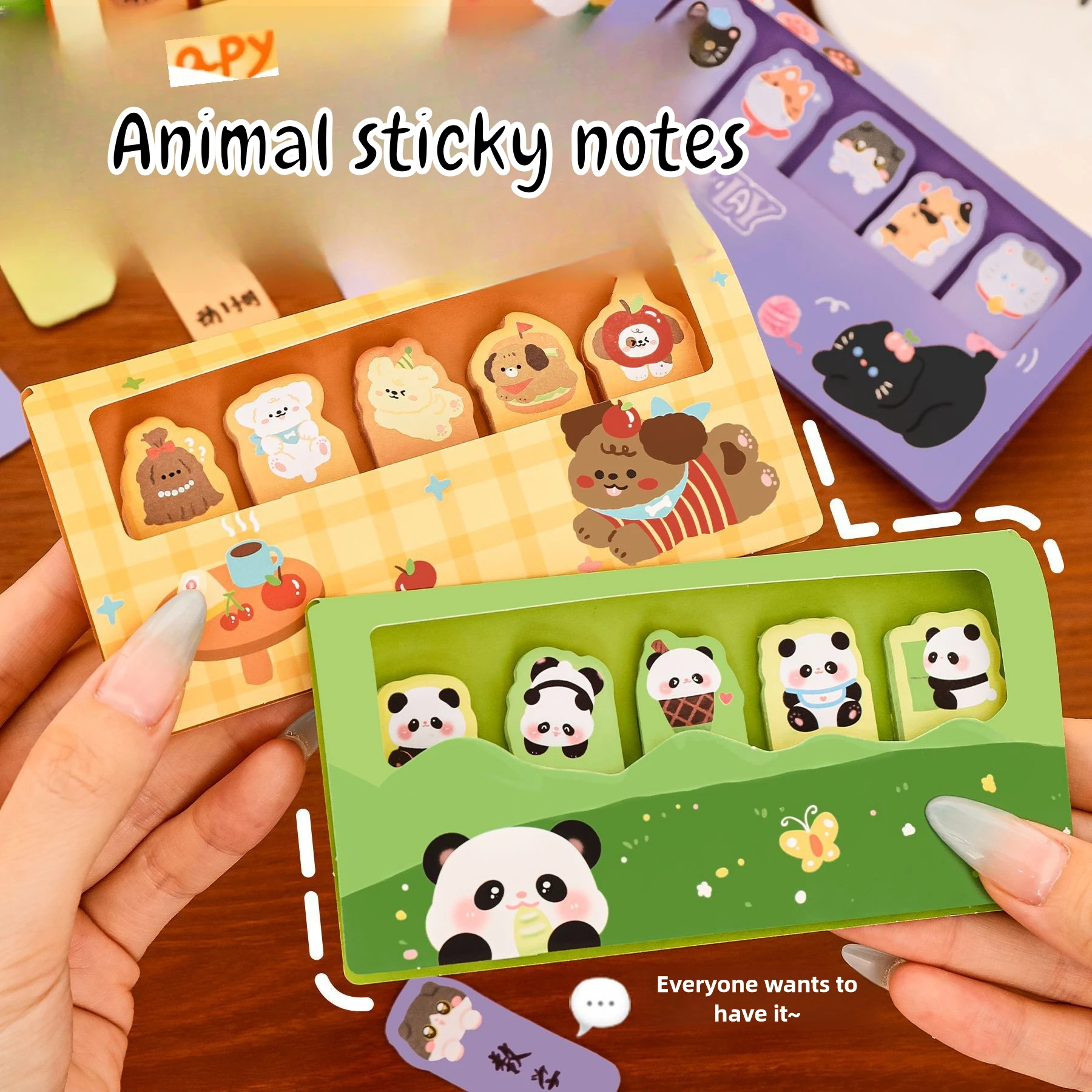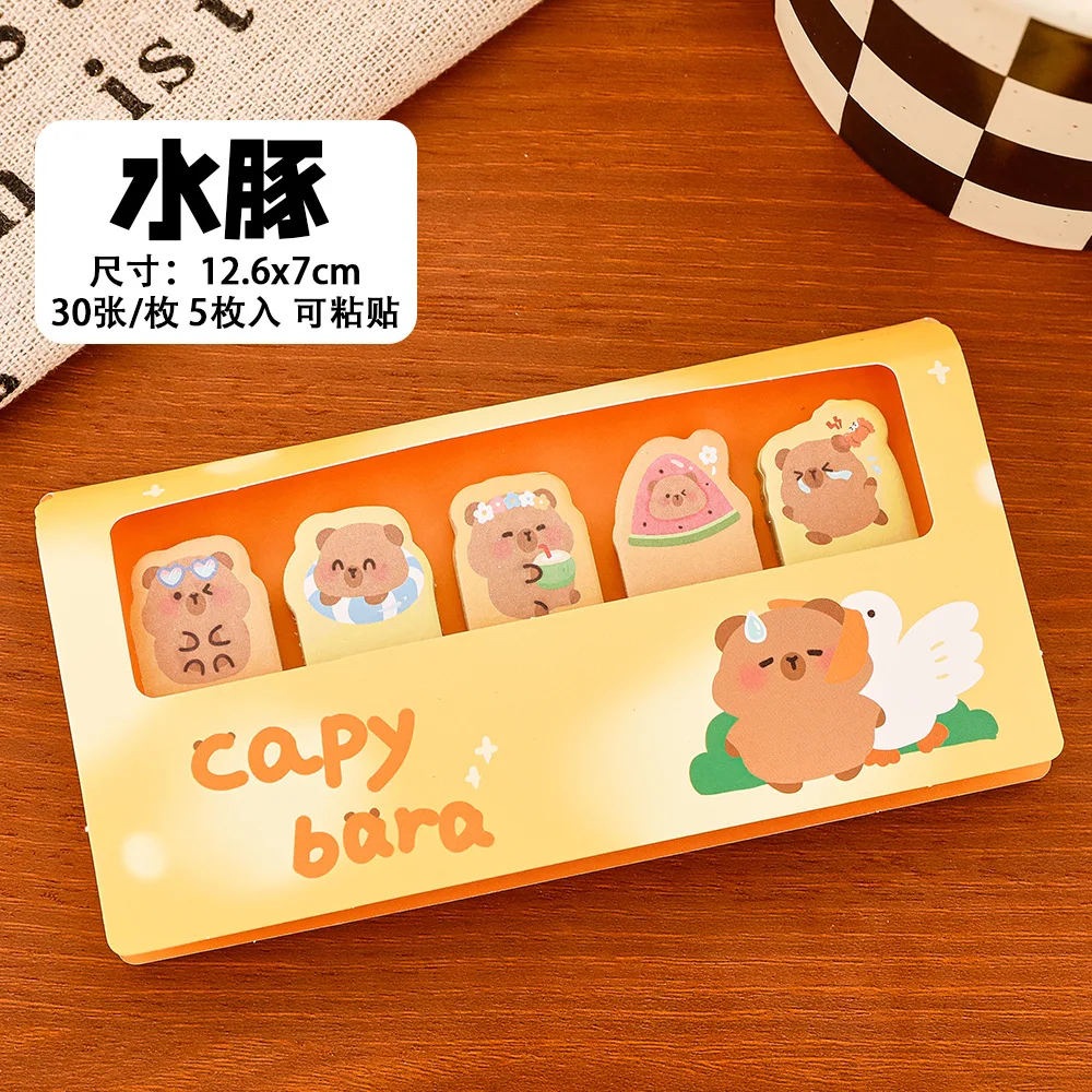Elevate your note-taking with this delightful set of five animal-themed sticky note pads, each containing 30 sheets of vibrant, pastel-colored designs featuring adorable pandas, cats, puppies, and capybaras. Crafted from 0.3 cm thick paper weighing approximately 11.6 grams per style, these self-adhesive memo pads are perfect for decorating your space, organizing tasks, or leaving charming reminders. The sheets are tearable for easy use and feature playful, cartoon-style animal illustrations with expressive eyes and soft, rounded shapes. Their cheerful colors and whimsical designs make them ideal for adding a fun, friendly touch to any workspace or personal collection.